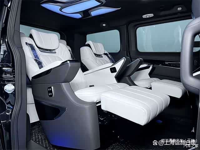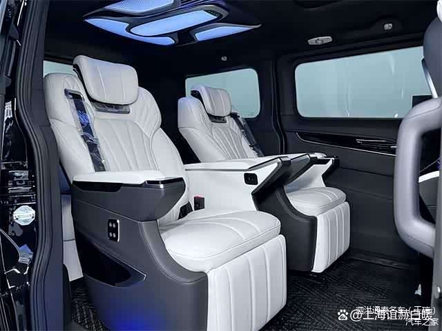 车内座椅配备豪华航空大座椅,具备触摸屏和物理按键两种调节方式,乘坐舒适度较高。此外,后备箱和第三排的空间充足,第三排的三联排沙发床可180度放平,适合长途旅行和公司用车。