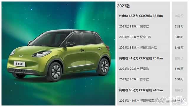 3、价格优势:五菱缤果的起步指导价为5.98万,相较于同级别的欧拉好猫等车型,价格更加亲民。这使得它在价格敏感的消费者群体中具有较高的吸引力。