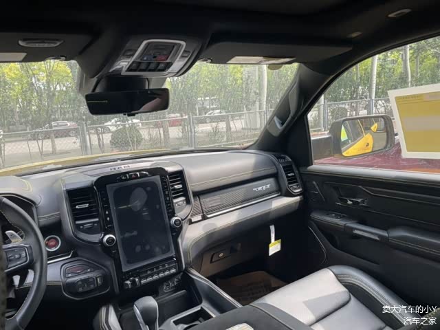进入车内,道奇猛犸象展现出了与其狂野外观截然不同的豪华与舒适。高级真皮座椅不仅提供了出色的支撑和包裹性,还具备加热、按摩等功能,为驾乘者带来极致的享受。中控台的设计简洁而实用,配备了 12 英寸竖置中控屏幕,支持蓝牙、导航、车载 Wi-Fi 等常见功能,还兼容 Apple CarPlay 和 Android Auto 手机映射,满足了现代人对于科技和便捷的需求。车内采用了大量软性材质和豪华木饰面板,细节之处尽显精致。仪表盘底边的花纹设计更是增添了一份文雅和细腻,展现出了独特的品味。