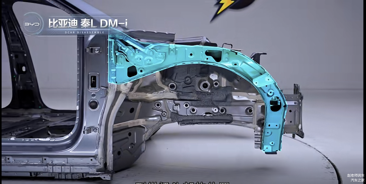 其次我们再来看看乘员舱(白车身),秦L是比亚迪专门开发的混动专用平台,后排地板纯平,横向的加强梁左右对称,主纵梁外扩的设计、上纵梁极长一直从A柱延伸下来,与主纵梁之间连接更结实紧密,更好应对偏置碰撞,前轮拱后部增加钢制挡板可以说是各个地方都做的非常到位;而银河L6主副驾的用料一致,主纵梁也做了外扩设计,上纵梁做了延长提升吸能整体也不错,整体秦L会更好一些,不过两个车在超高强度钢的占比上,以及车身的防锈工艺上都非常不错。