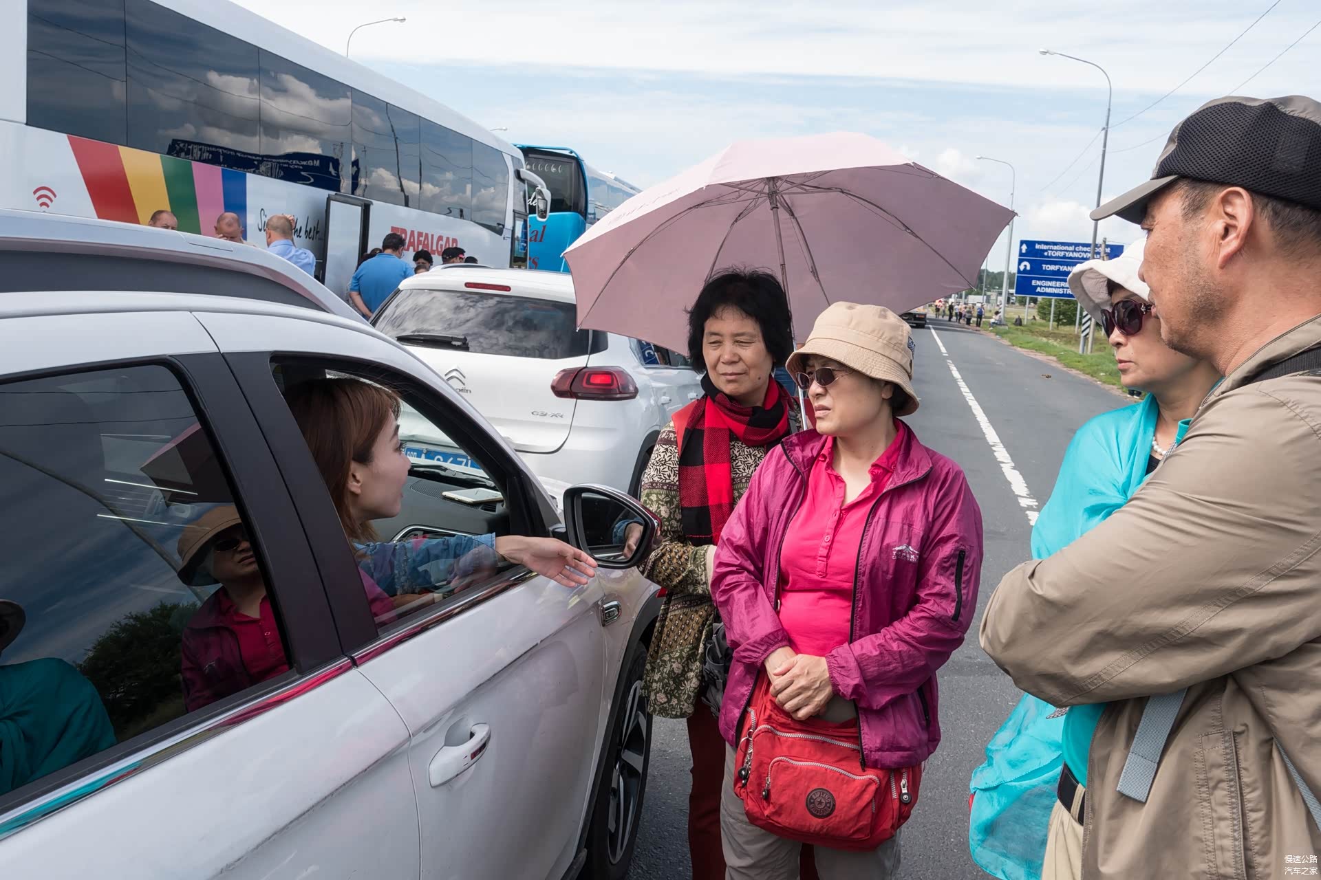 挂着中国牌照的C3-XR刚排进出关的队伍,就引起了一大波来自中国的大巴旅行团的围观。所有人都好奇我们是如何做到的,我们也不厌其烦地与这些老乡诉说路上的趣事。饱经风霜的C3-XR车头还留着俄罗斯国道上的飞虫和蚊蝇,却依旧势不可挡地成了这会儿最受欢迎的合影对象。