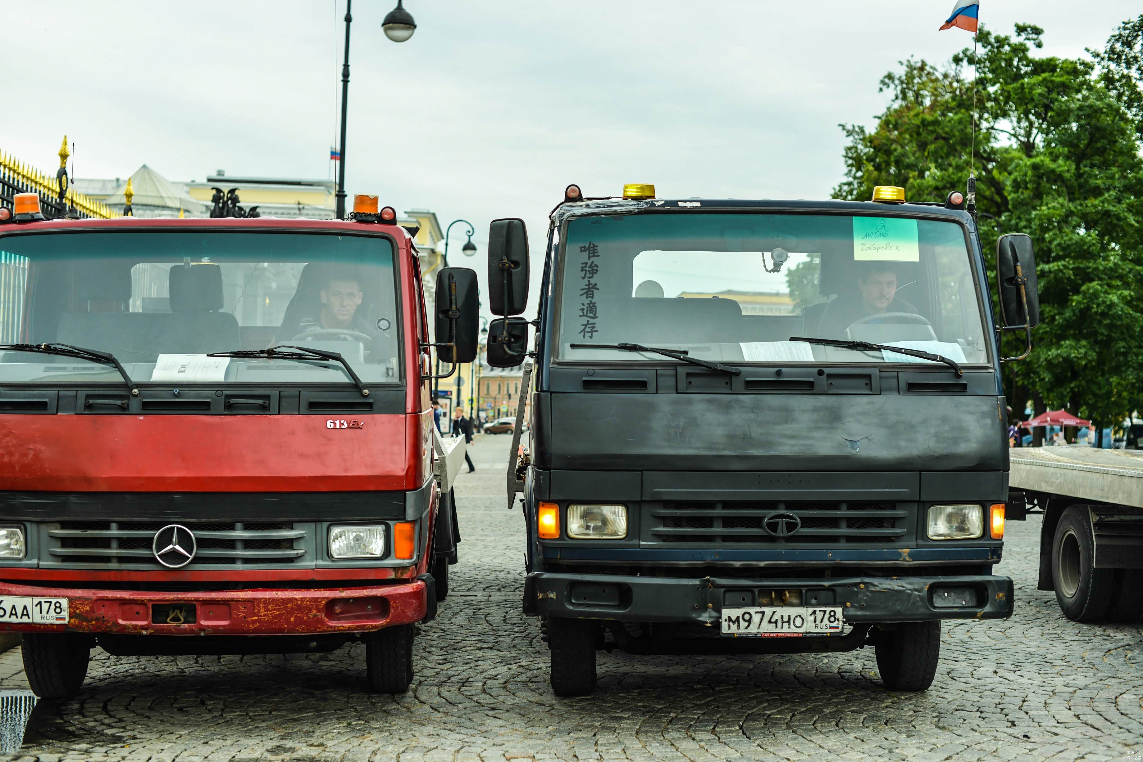 正一筹莫展之际,两辆拖车驶了过来,就停在我们身后不远处,仔细看了一眼其中一辆车的前挡风风玻璃,不禁被它的霸气所震慑!可惜拖车司机并不会说英文,但他们显然明白,正是它们拖走了我们的车。这时旁边又来了一位警察,大概看出了我们的窘境,于是就上来帮忙翻译,得知那辆被拖走的车停放的位置并非停车区,哎,大意了!被其他老毛子们乱停车误导了,导致没有看清周围的禁停标志!要知道,整个俄罗斯几乎都没有收停车费的,几乎都是随意停车,看来,圣彼得堡是个例外。最后,通过拖车司机的帮助,我们在google map上定位了停车场,一行人立马跳上另一台车,驱车前去解救我们的C3-XR!