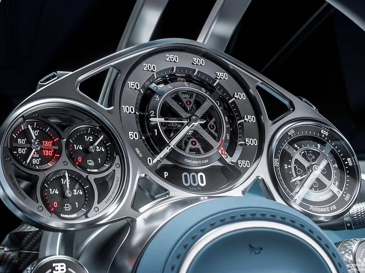 打开车门,你就会知道Tourbillon(陀飞轮)的真正意思,它的仪表盘是机械结构,由600多个零件组成,就像机械钟表一样,十分精密,仪表盘上还有红宝石和蓝宝石,十分尊贵。
