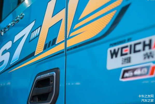 驾驶室两侧,豪沃TS7系列强化了品牌及产品特性的突出,像“TS7-H”天然气车型除了醒目的产品系列标识,还有动力标识“潍柴NG 4.0”,集团标识“SINOTRUK”,以及变速箱系列标识等,表现丰富且辨识度极高。