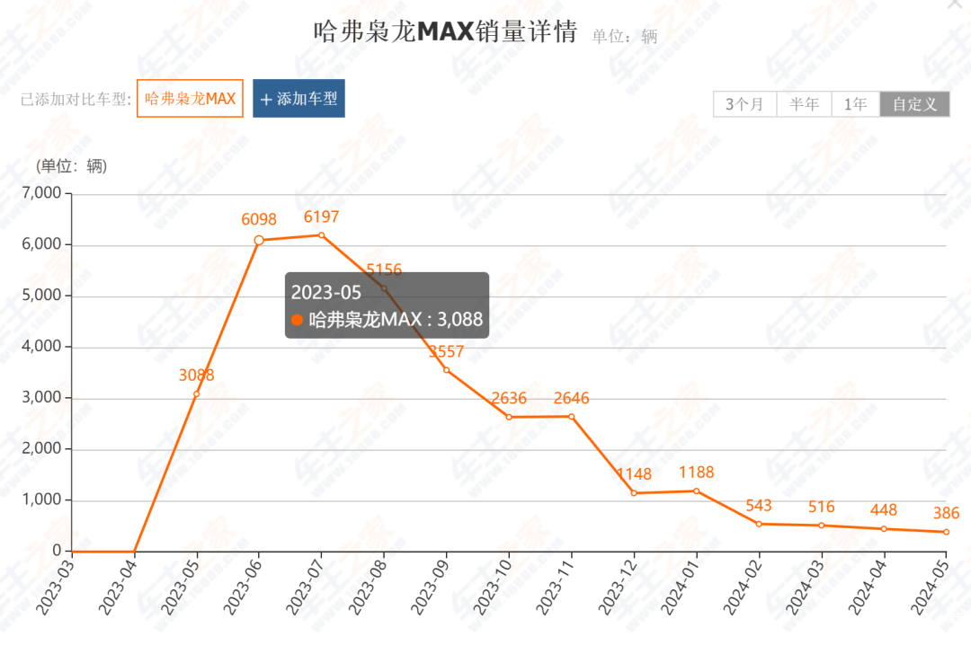 还有枭龙双子,当初上市的时候枭龙MAX可是瞄准月销量1-1.5万的,但是在上市第二个月到达6197辆的巅峰之后,就一路滑滑梯,过去半年月均只剩下700辆。至于弟弟枭龙车型更是直接消失在长城的销量清单上。
