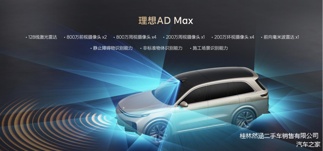 在智能驾辅方面,Max版的配置表现向L9看齐,配备了6颗800万像素摄像头、5颗200万像素摄像头、1颗128线激光雷达、12颗超声波雷达、1个毫米波雷达以及总算力达到508TOPS的两颗英伟达Orin-X芯片,支持理想AD Max智能辅助驾驶系统。