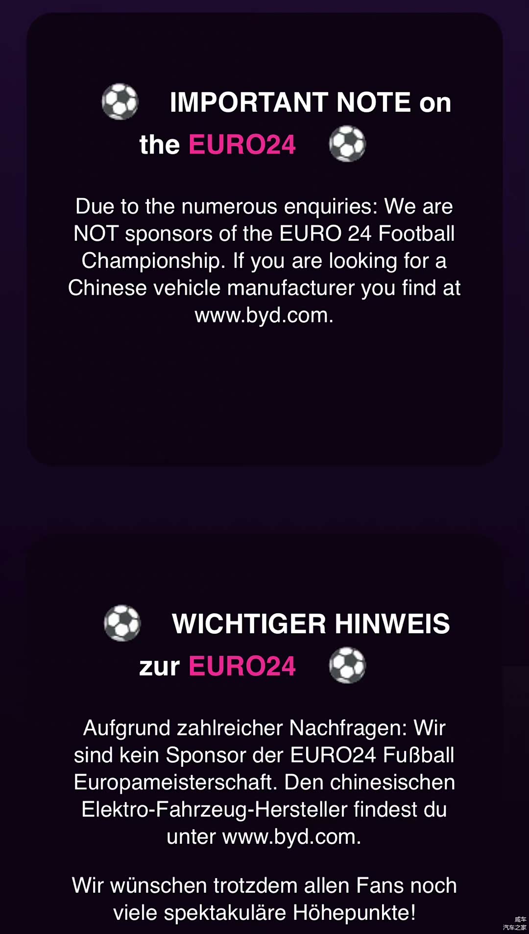 进入国外新能源市场,如何扩大影响力,让更多消费者接触了解产品,对比亚迪至关重要。比亚迪也一直在努力耕耘欧洲市场,推出一系列措施如:在匈牙利建立工厂,赞助了2024年在德国举办的欧洲杯。