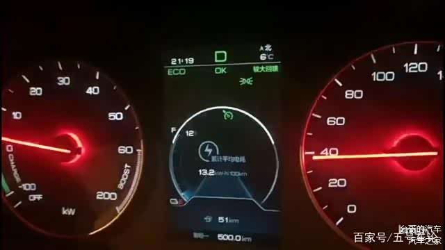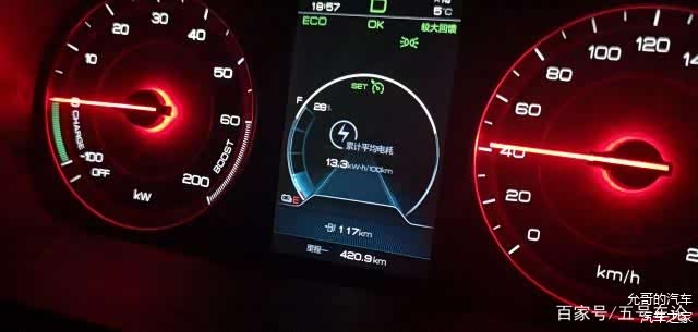 我们将速度压到了40km/h左右,并且关掉了车上所有的多媒体设备,此时每下降一个百分比大约能行驶6km,行车电脑显示的续航距离也能达到500公里以上。