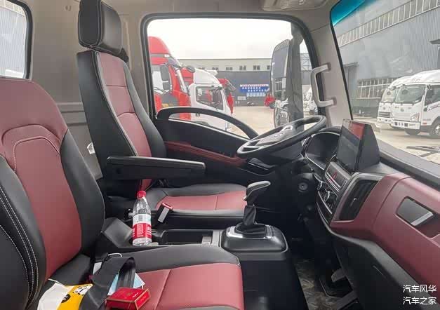 陕汽德龙K5000采用了气囊减震座椅,这个轻卡上鲜有的配置极大的提升了驾驶员的舒适性。在驾驶室内是一个三座的布局,座椅面的材质用的是皮革座椅