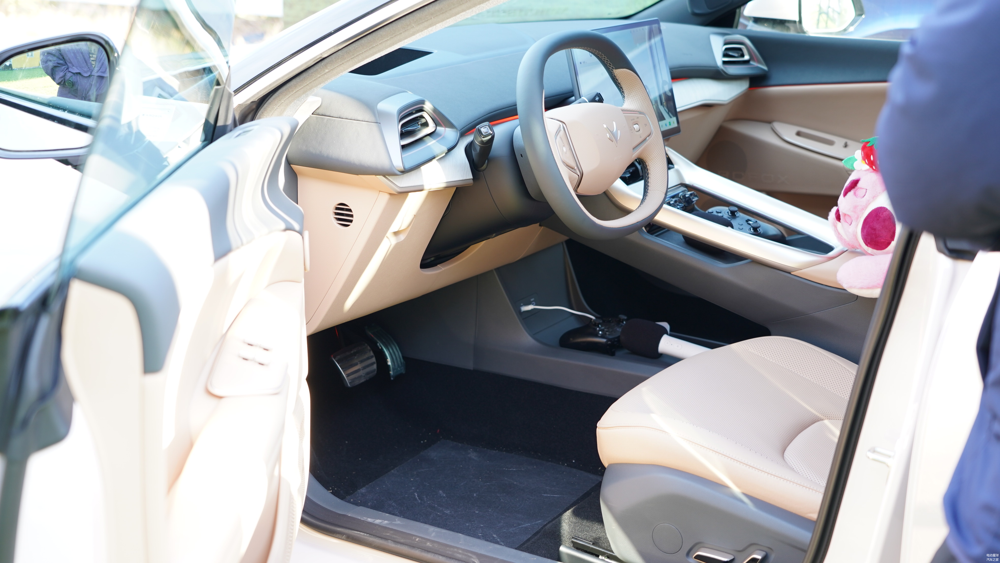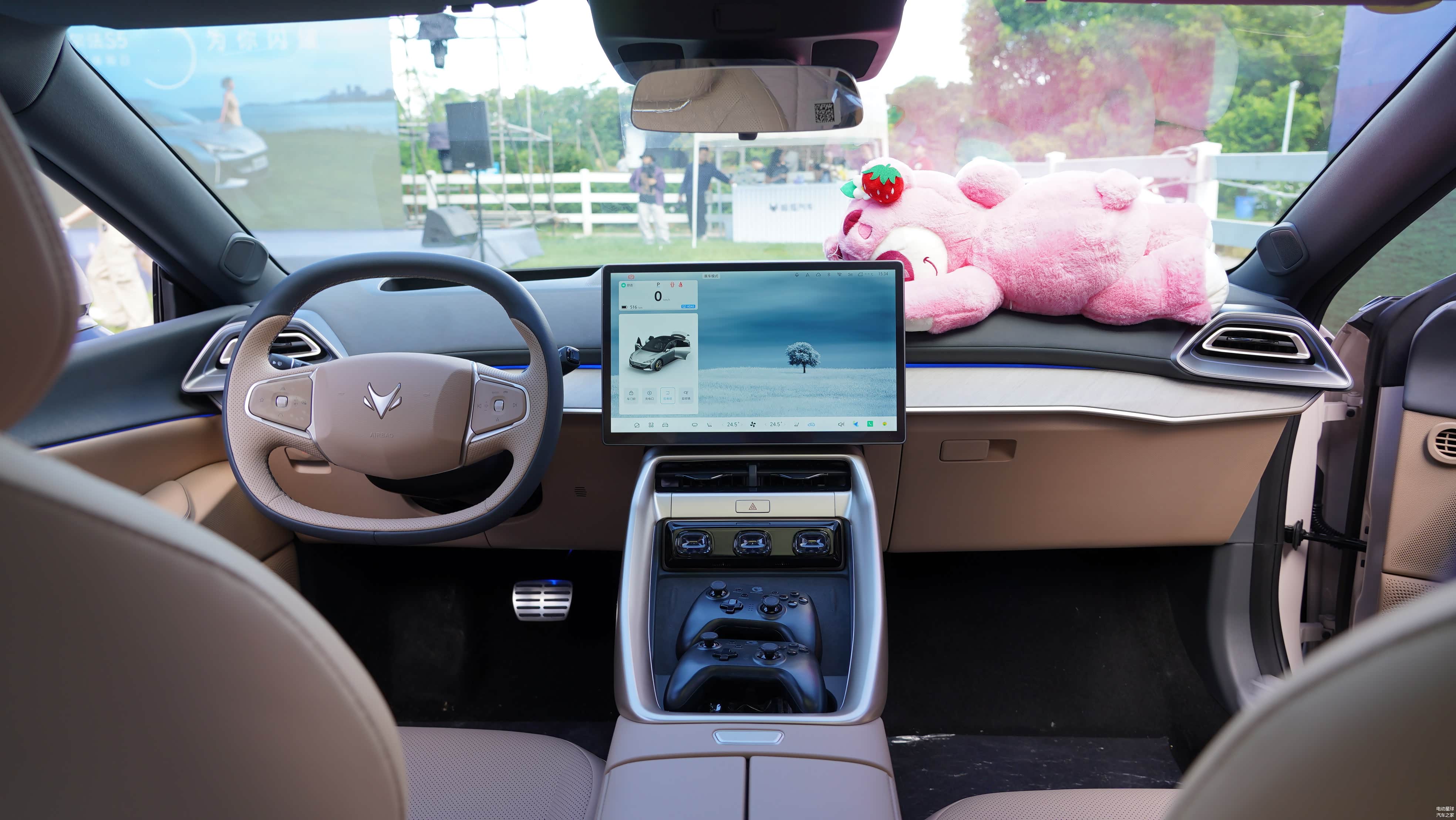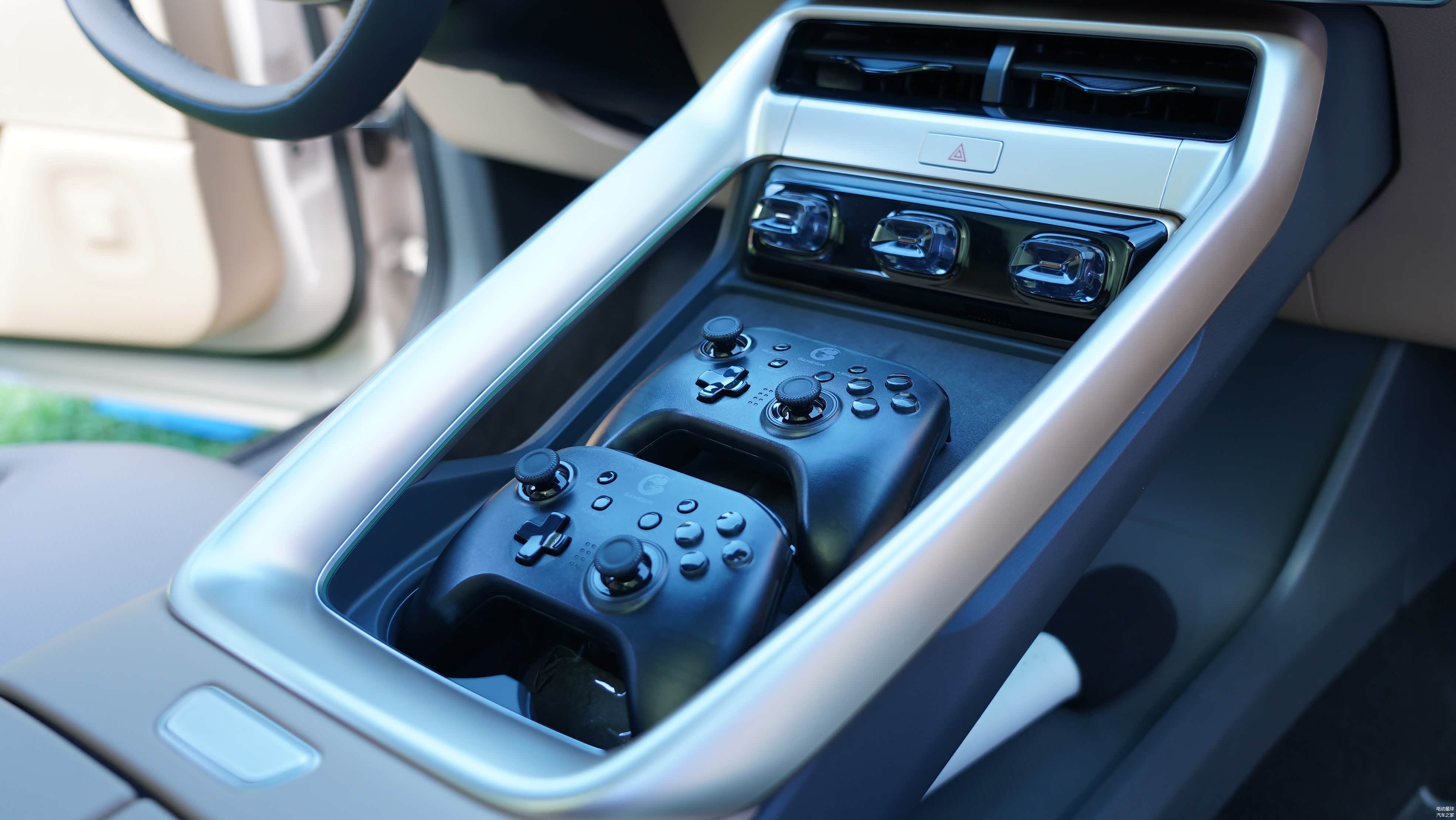 8155 车机芯片支持车内 K 歌、狂野飙车游戏等功能,体验感十足;方向盘的握持感较舒适。