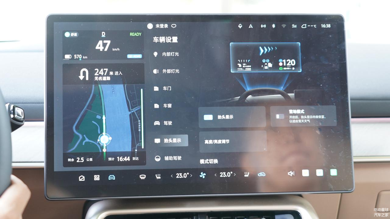 全系标配 68 寸 AR-HUD,显示效果以及清晰程度较好,可以调节它的位置,不会影响开车遮挡视线。