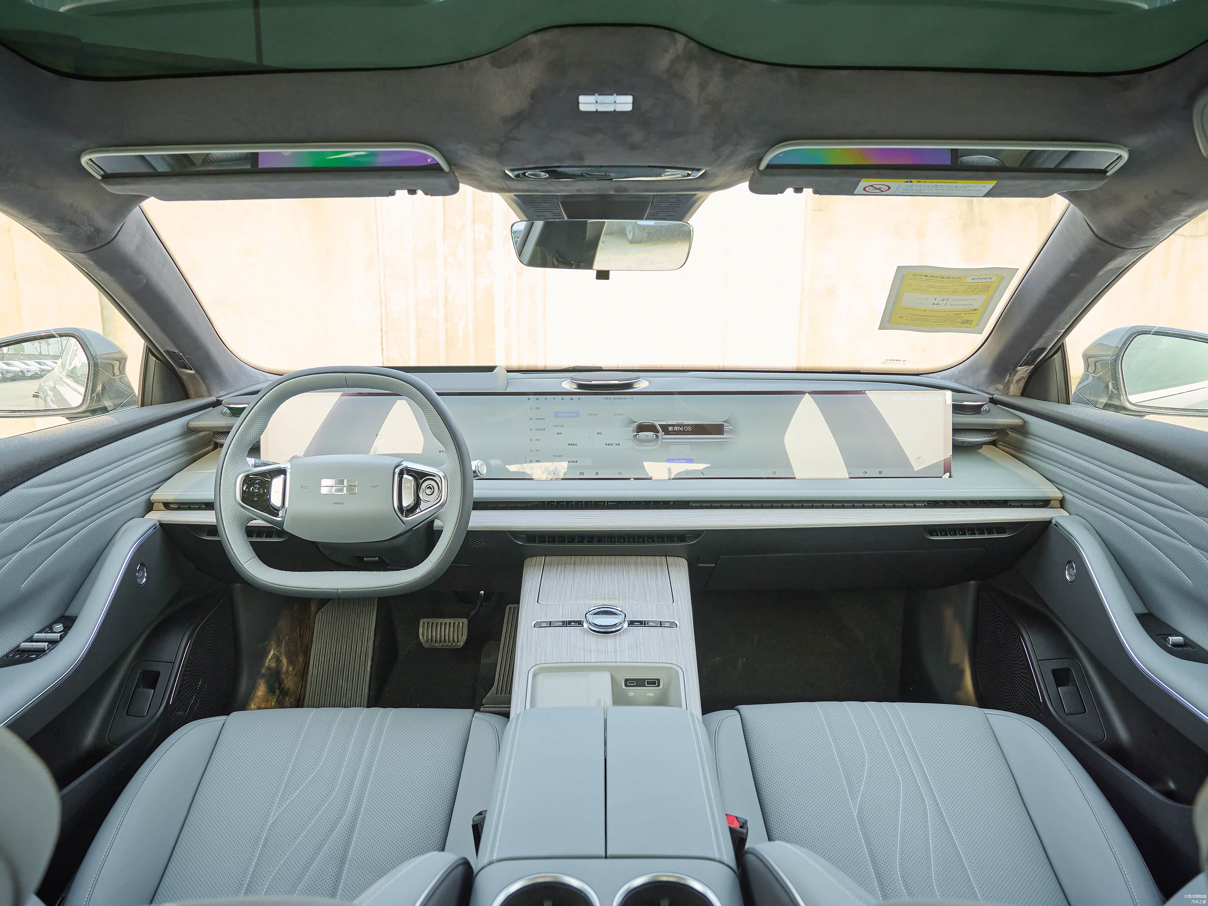 至于内饰方面,银河E8性能版更是将前卫时尚与科技感完美融合,采用了双幅式平底方向盘和怀挡式换挡机构,中控台则配备了一块高达45英寸的贯穿式8K显示屏,内置了银河N OS无界版车机系统,并搭载了强大的高通骁龙8295旗舰芯片。值得注意的是,虽然该款相较于次顶配车型价格高出了1万元,但这主要源于其配备了四驱动力系统,并且在配置上增加了20英寸轮毂、副驾驶高低调节、前排座椅按摩功能以及运动外观套件等豪华配置;然而,为了平衡成本,也相应地删减了一些驾驶辅助功能,如信号灯识别、自动变道辅助、匝道自动驶出(入)、自动泊车入位和遥控移动车辆等实用功能。