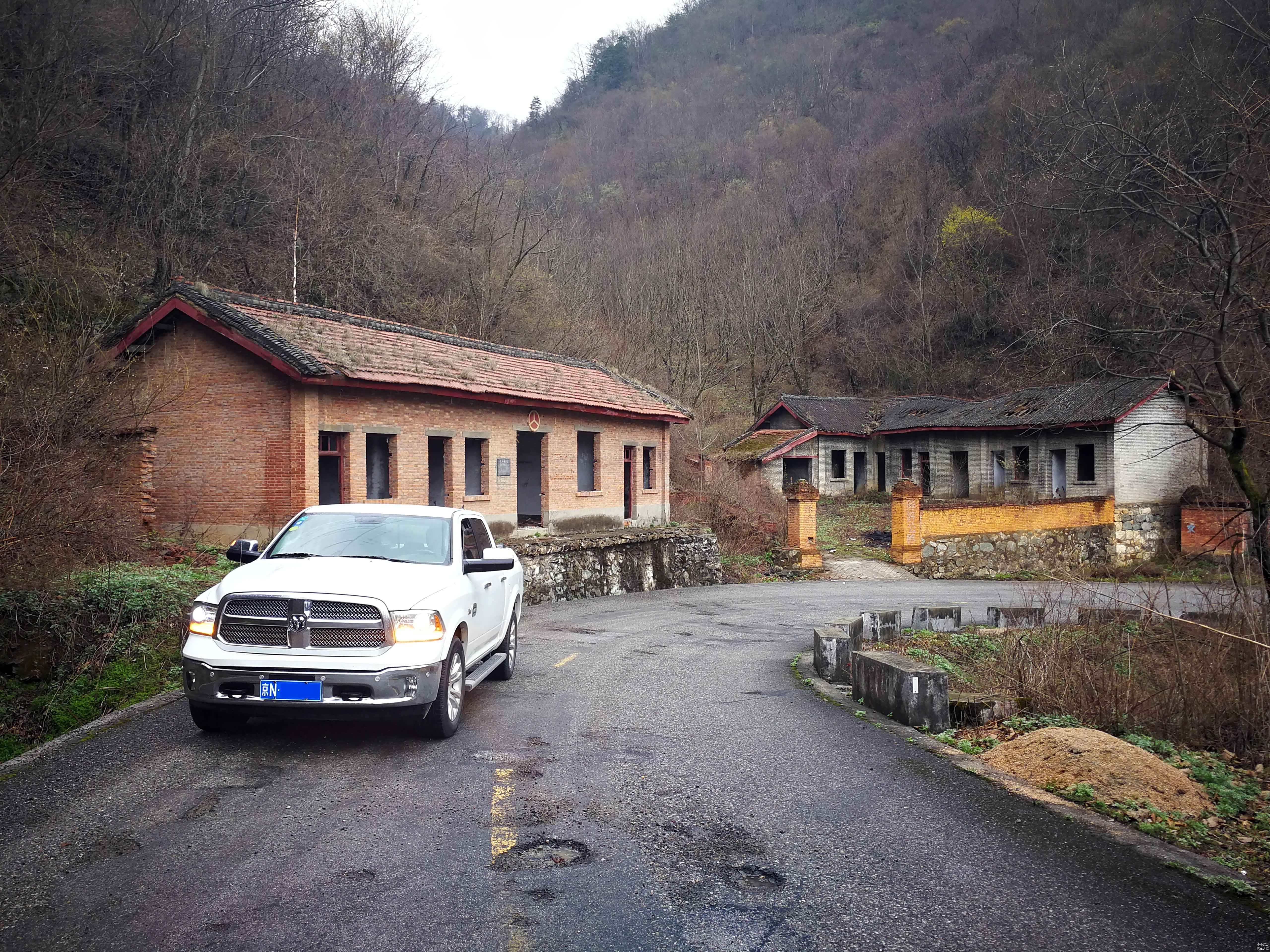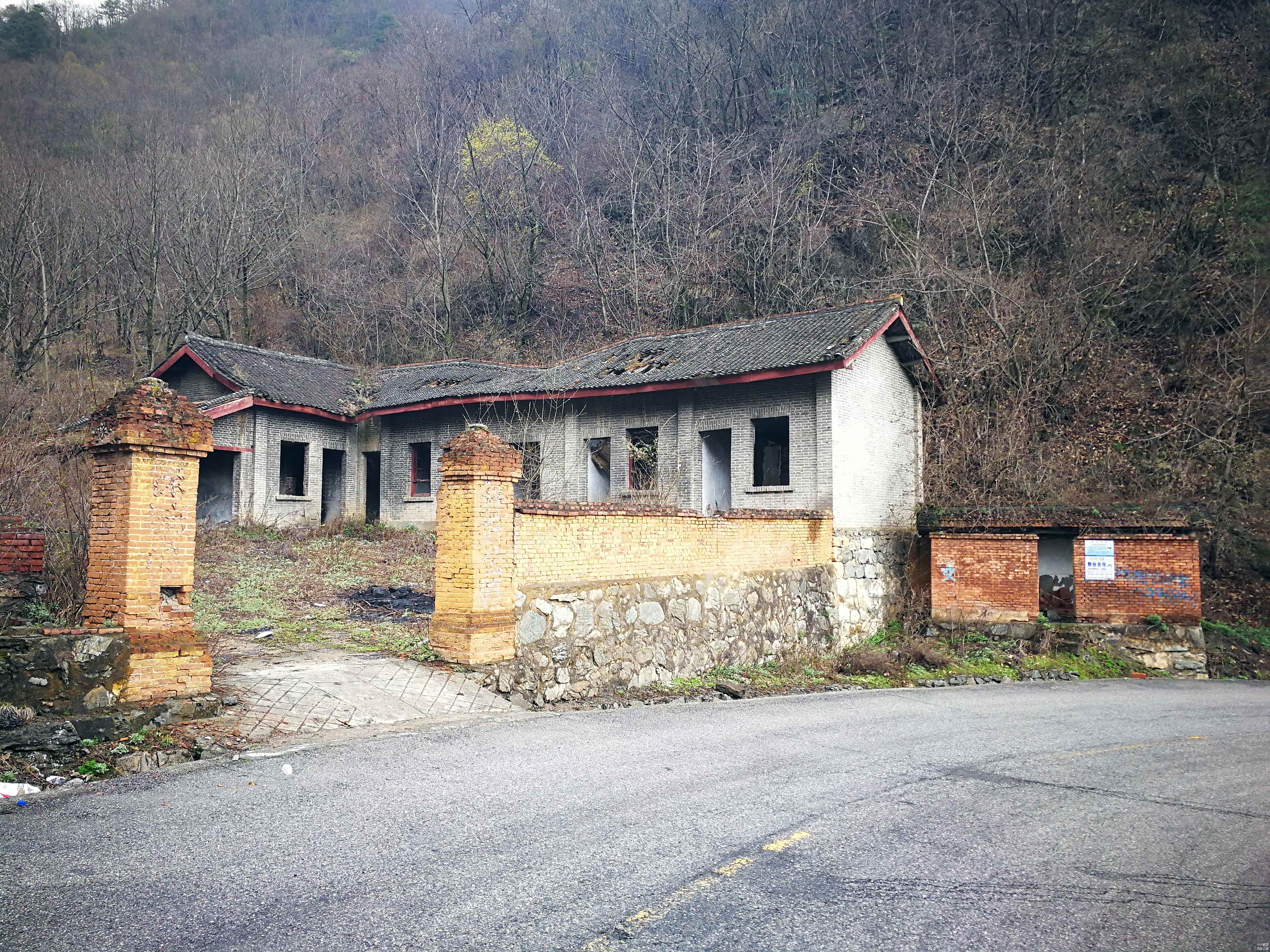 牛背梁的山路属于省道,不但人烟稀少,而且路况更为复杂,比较颠簸。在上山途中还我们发现了几幢废弃的房屋。看样子这个房子以前应该是个办公+生活的地方,这座房子应该是办公区,虽然已经破败,但今日值班的字样依旧可见,仿佛当年人们工作、聊天的画面似乎就在我们眼前。大地被夕阳染成了红色,一位和蔼可亲的老者在小黑板上写着,今日值班:葛二蛋。写完抽口烟斗,端着茶杯,转身望向山腰,露出知足的笑容。旁边的小砖房,用专业的术语来说,叫茅房。