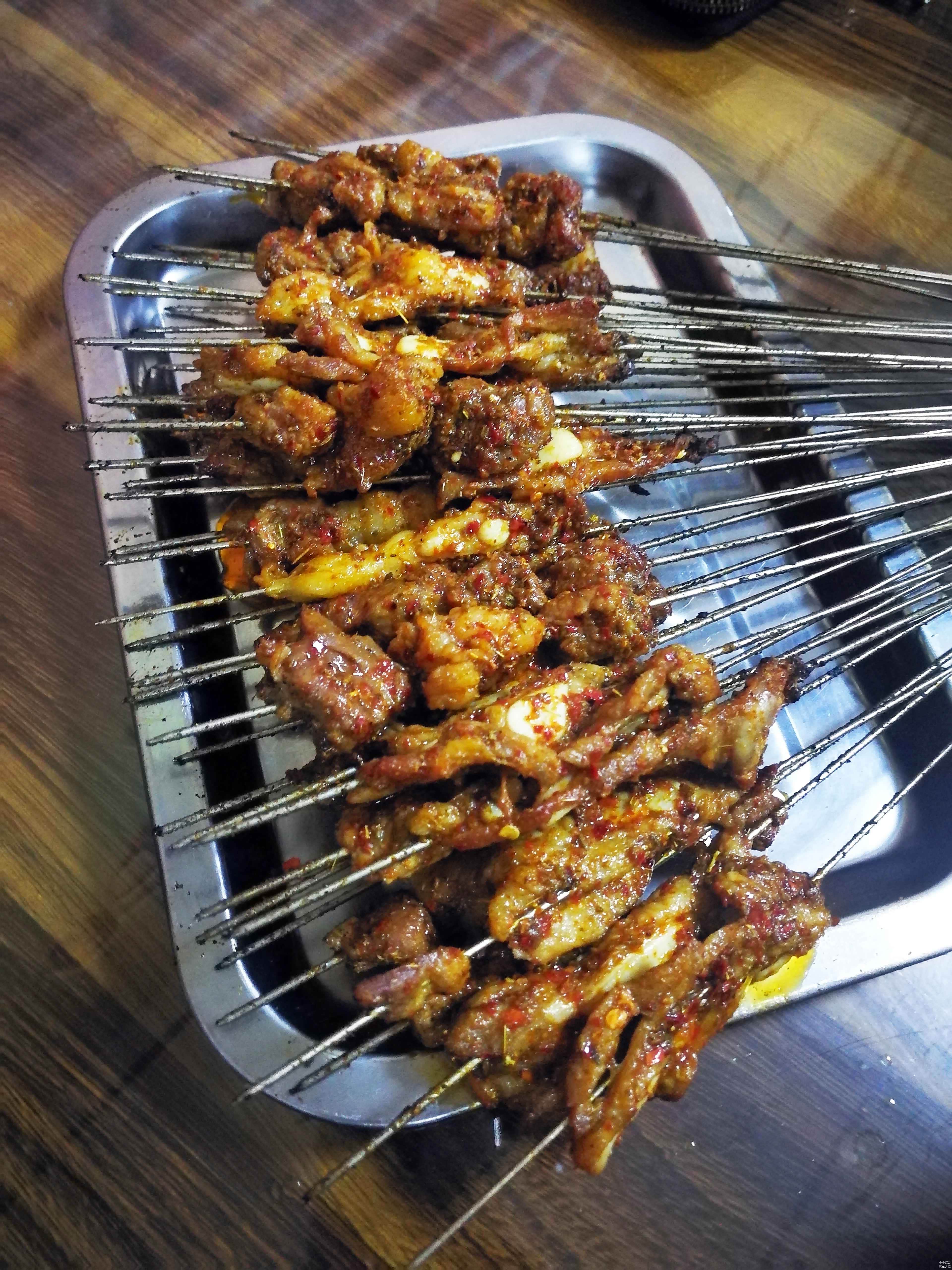 需要跟大家解释的是串儿,和北京的套路不同,味道很咸,特别辣。这里边有,牛肉串、牛脆骨、牛筋,非常有嚼劲儿。