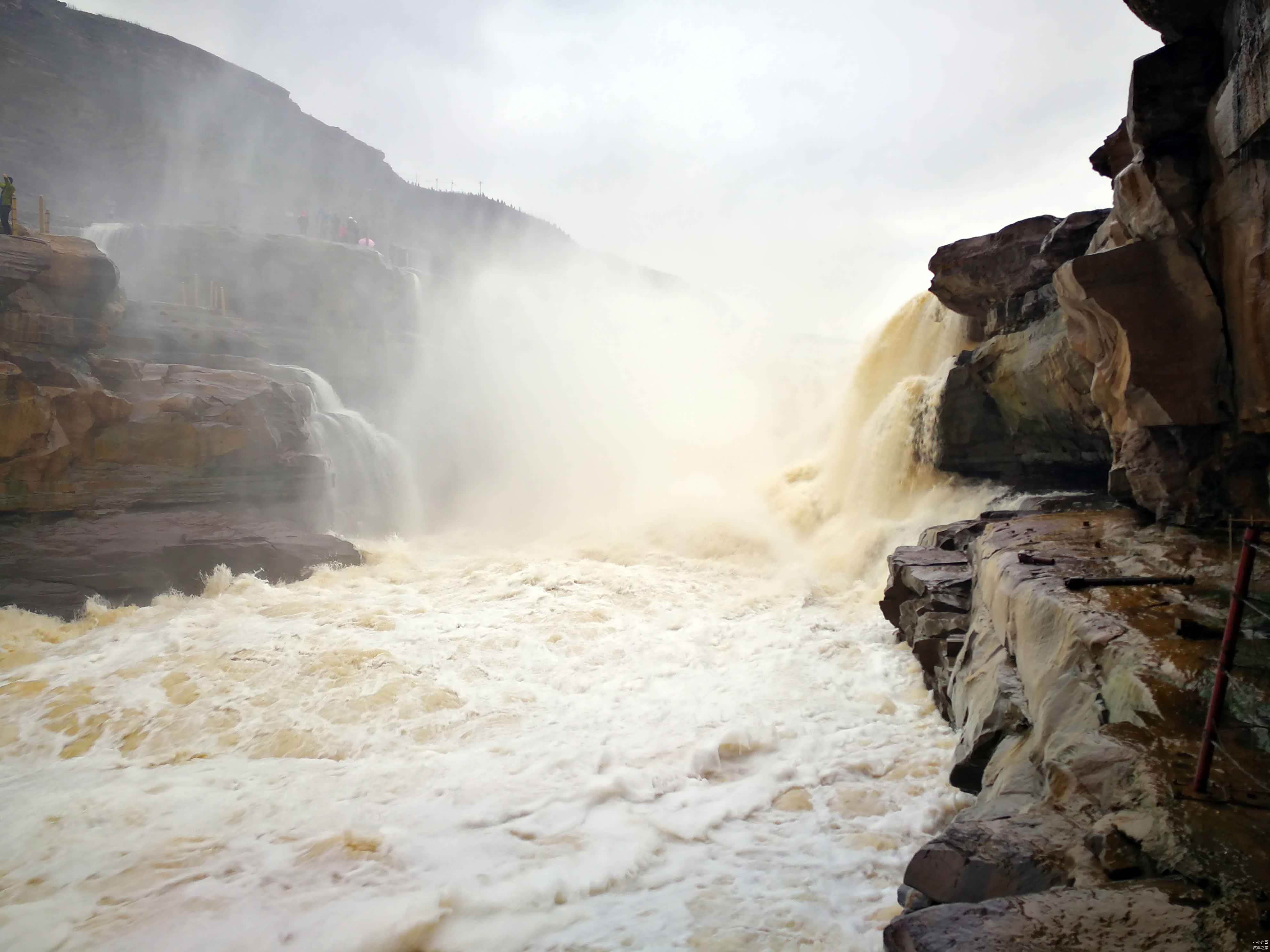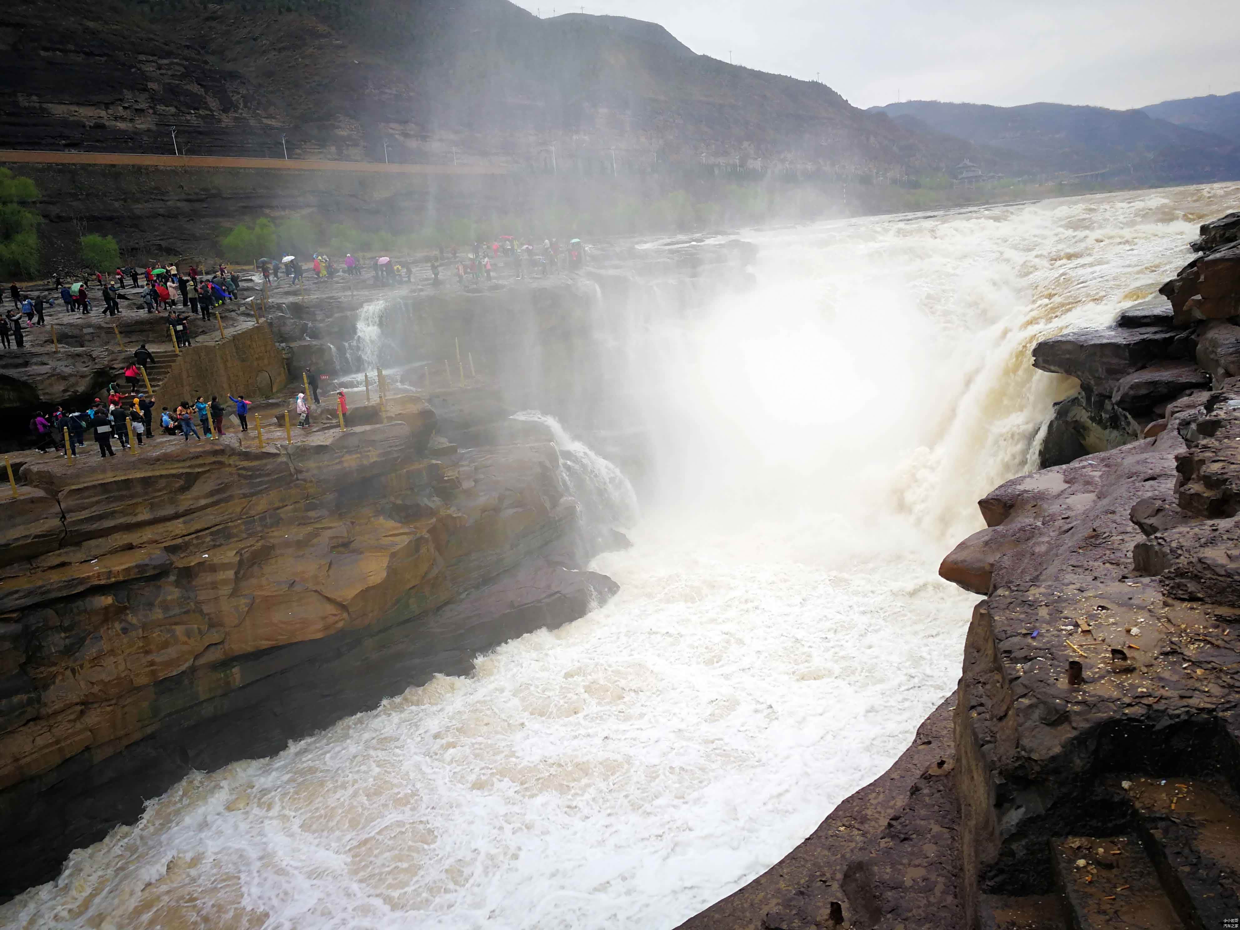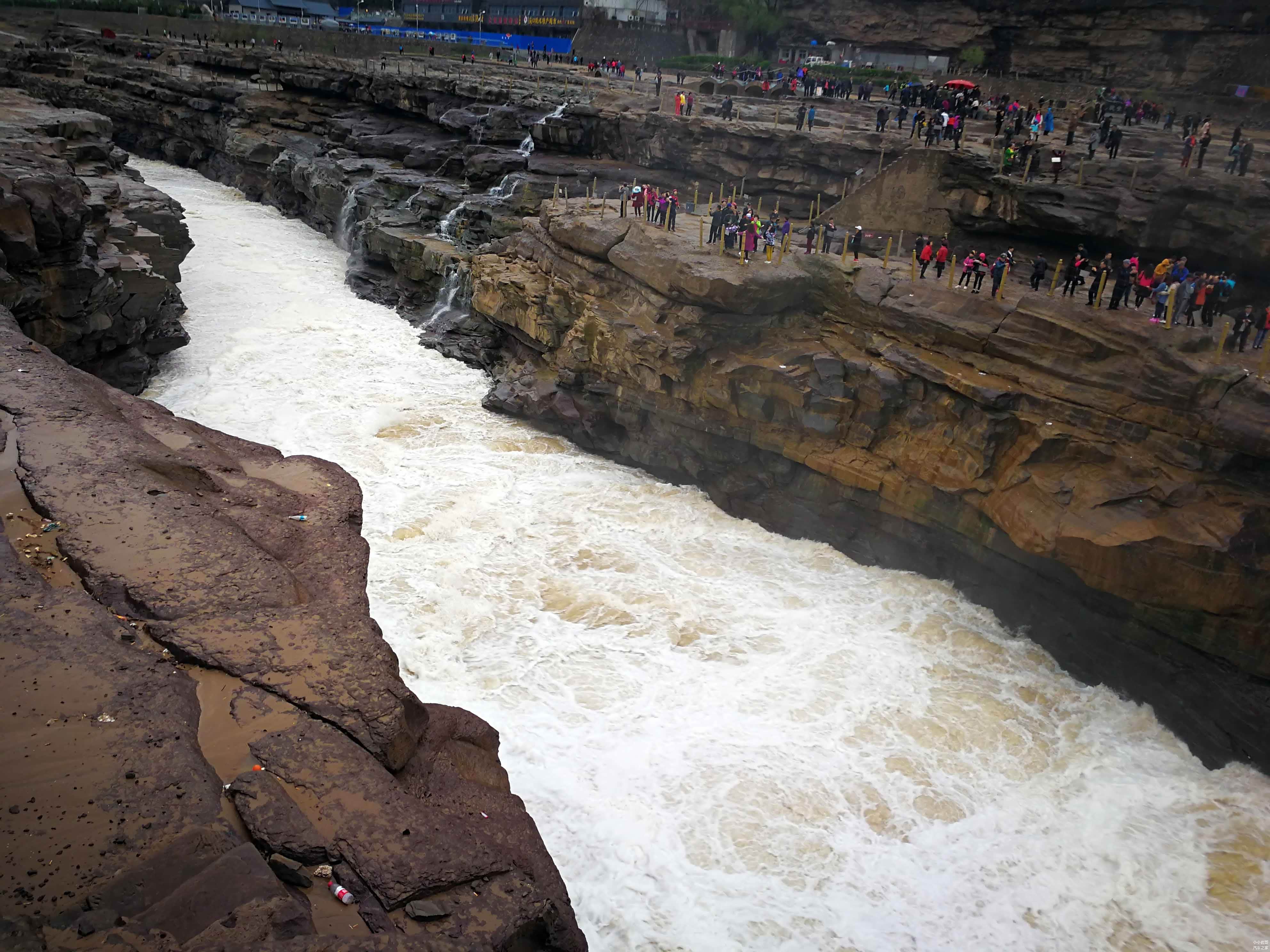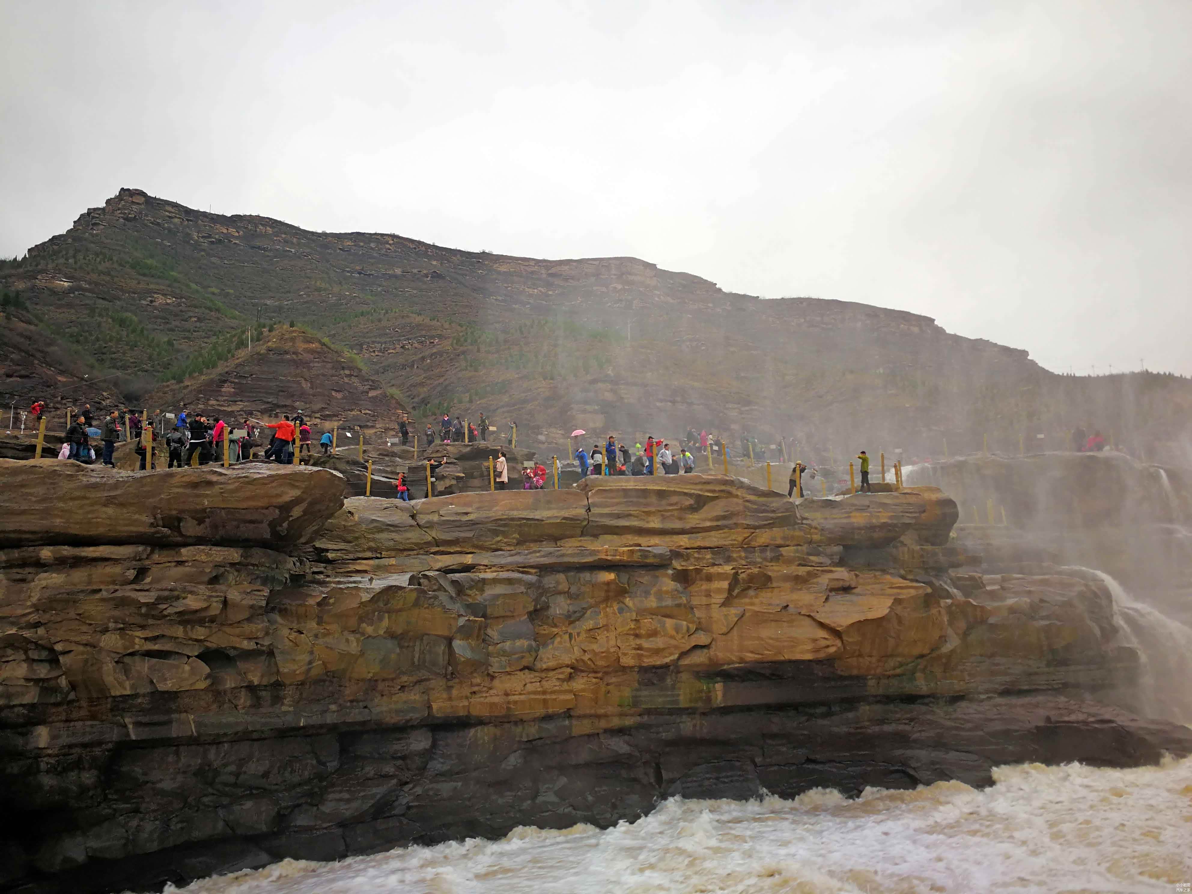 由于壶口瀑布是著名的景区,所以时常各种观光团路过,无论是拍照还是参观都会遇到障碍,你懂得.......壶口瀑布的两岸被分割开来,一侧是山西,另一侧是陕西,在景区中两侧无法穿越。