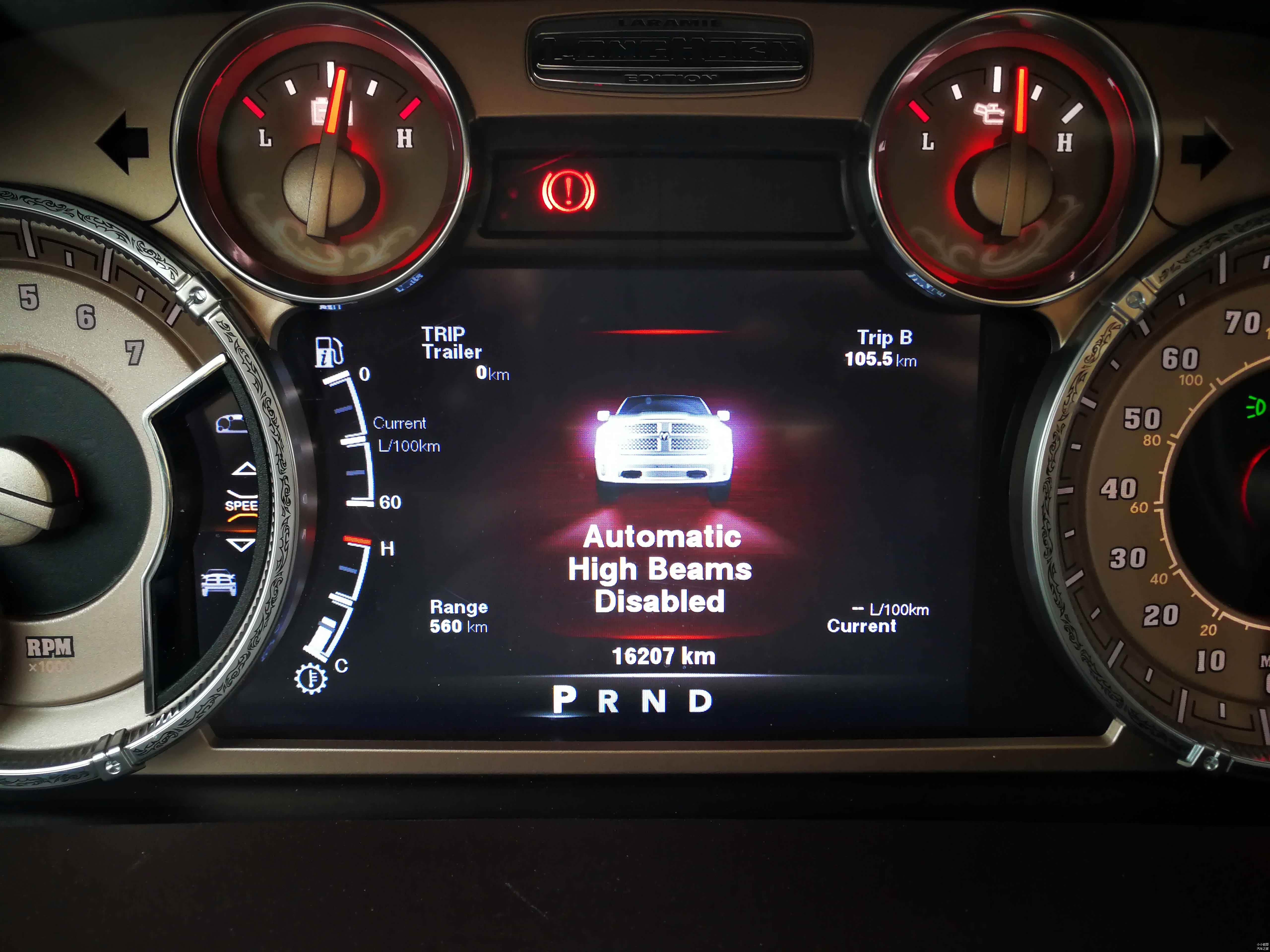 省道上属于一个完全没有路灯的路段,好在RAM1500配备了自动大灯和自动远近光灯功能,此时非常受用。它会自动检测前方的光照情况,如果对面有车经过,远光会自动关闭,没有强烈光线时会自动开启。在山路行走的时候,我们发现省道两侧的老乡家里都点一盏喷灯,因为不知道其用意,还有一种阴森的感觉!