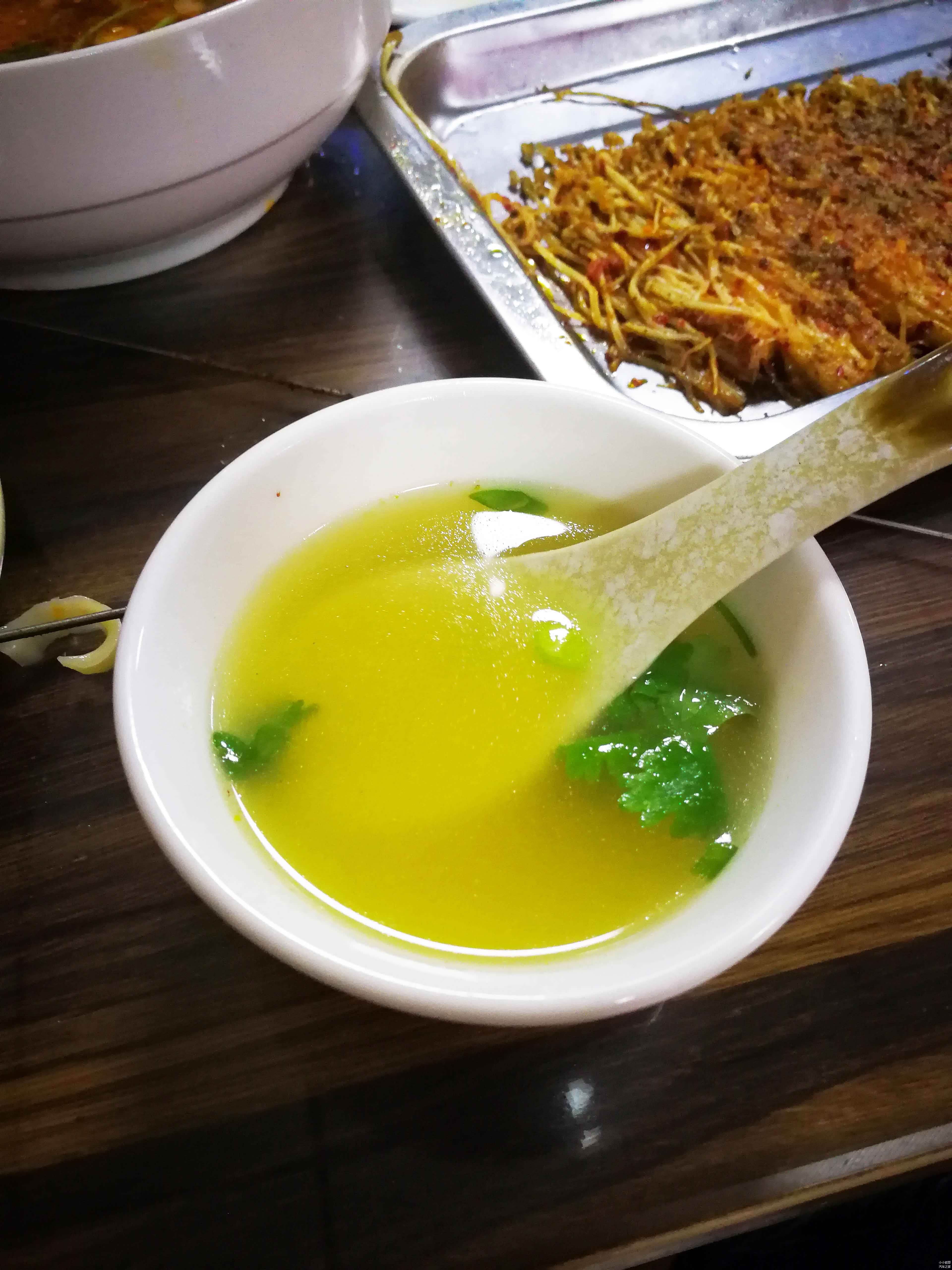 肚丝汤,汤中除了肚丝外,还加入了大量的胡椒粉和醋,酸甜的口味非常浓重。