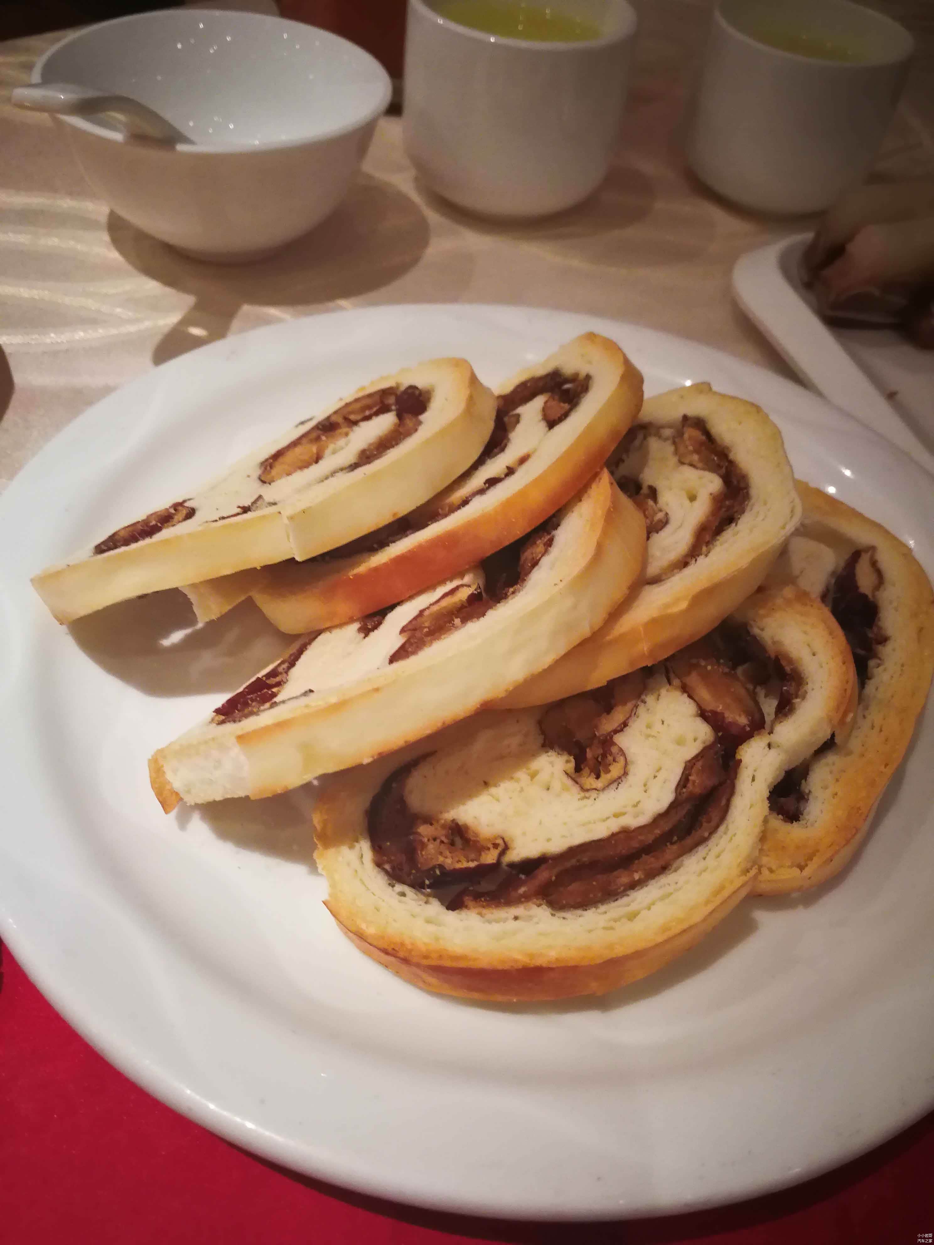 这个烤枣馍味道也是相当不错的,馍片和枣一起蒸,将枣和馍的香气混合在一起,非常有特色,但美中不足的是有点硬。