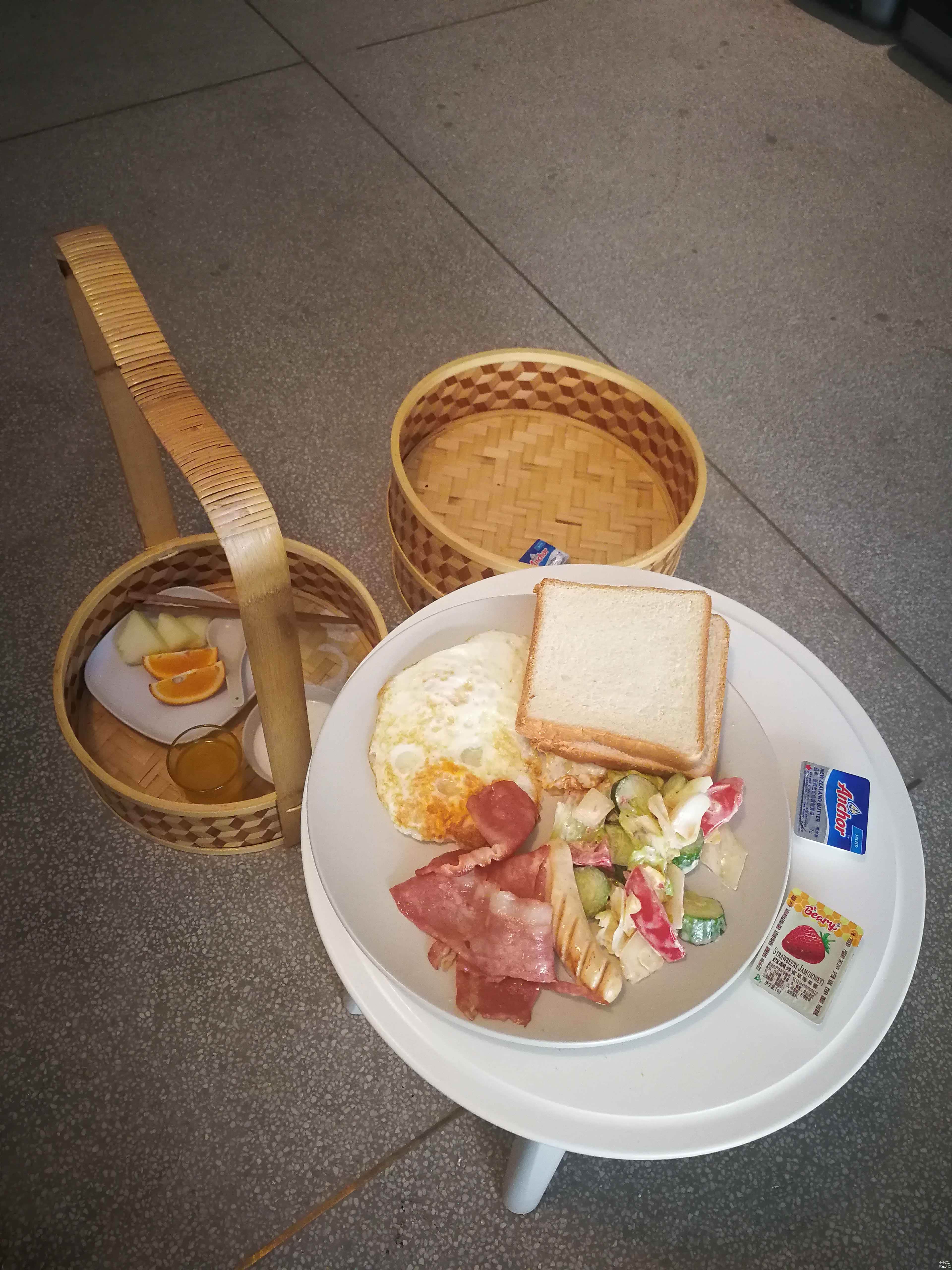 酒店提供早餐送餐服务,有中式、西式以及当地特色三种口味可以选择。我们选择的是西式的,搭配合理,味道讲究,没毛病。