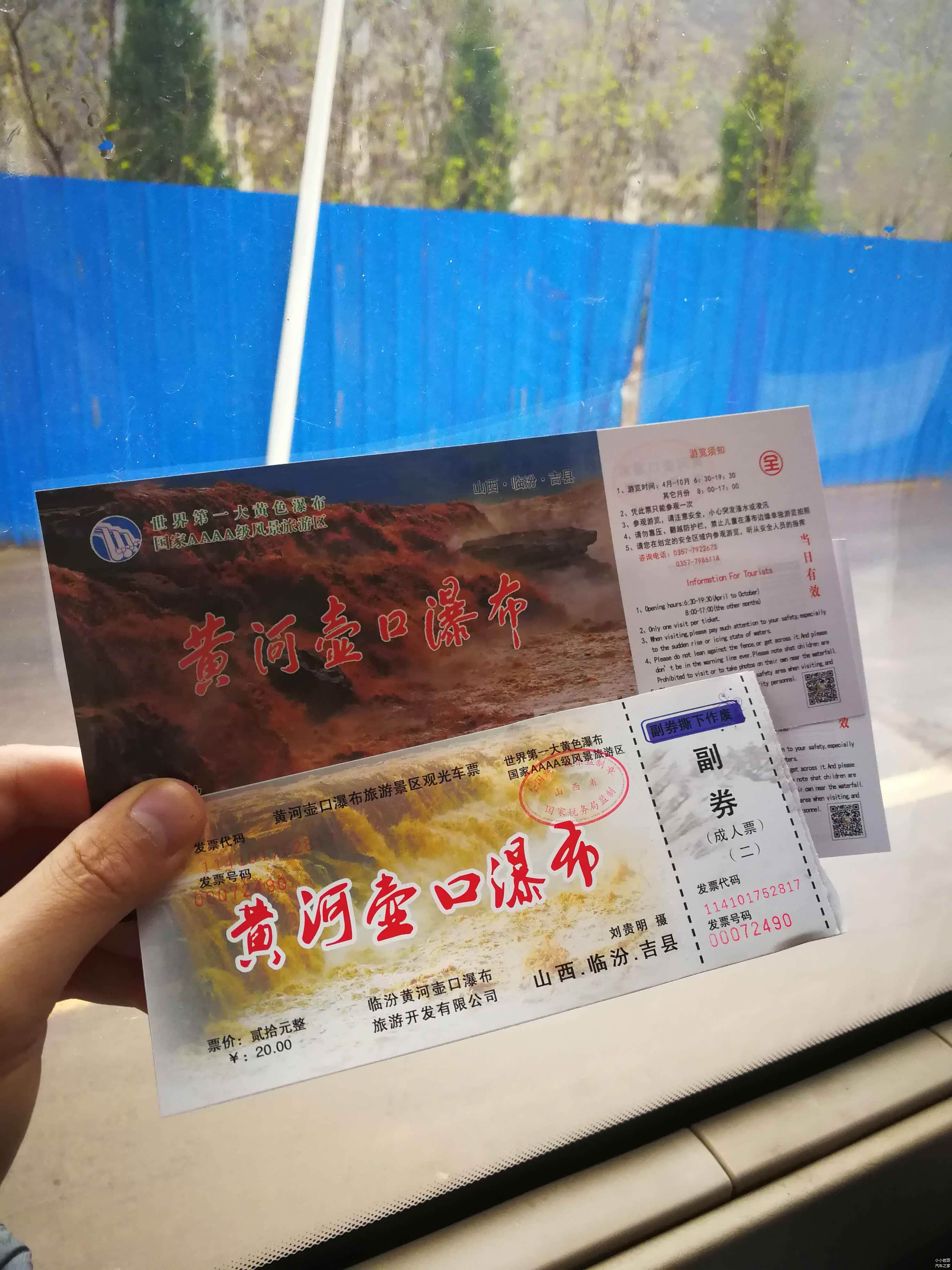 傍晚到达壶口,我们有些担心能否进入壶口瀑布一览美景,但工作人员告诉我们下午6点半之前都可以,我们便买了票,门票价格每张100元,摆渡车每人20元。自驾的话,到售票处车辆便禁止通行了,需要乘坐摆渡车进入,从售票处到景点,官方说有4公里的路程,但我们感觉也就2公里,也可以选择徒步到达景点。