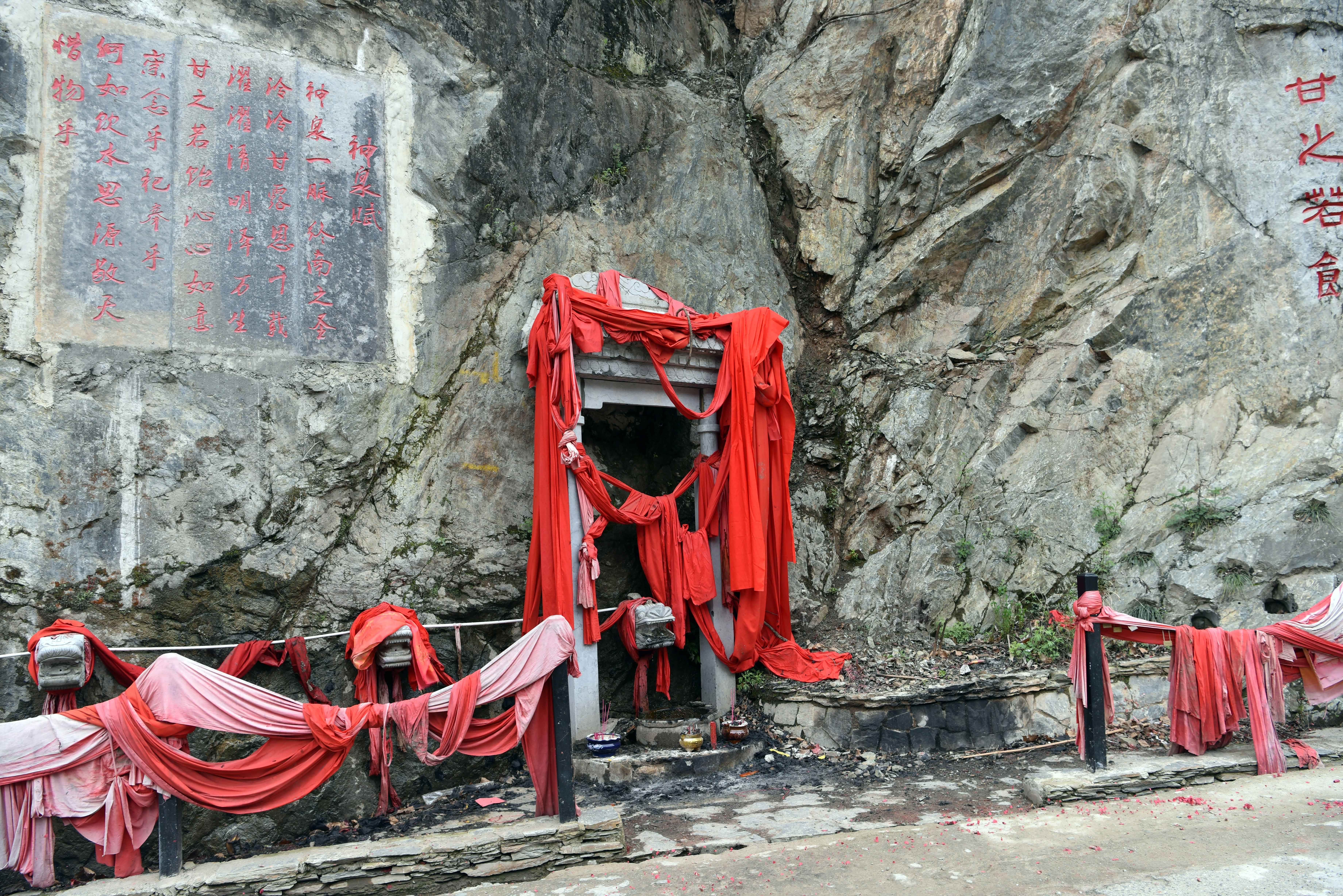 继续沿着下山的路走,在山脚处我们发现了当地人供奉圣水的石碑。其实生活在山里的村民对于自然的领悟比生活在城市中的人们更加深切,靠山吃山靠水吃水的他们更加珍惜自然给予我们的一切。