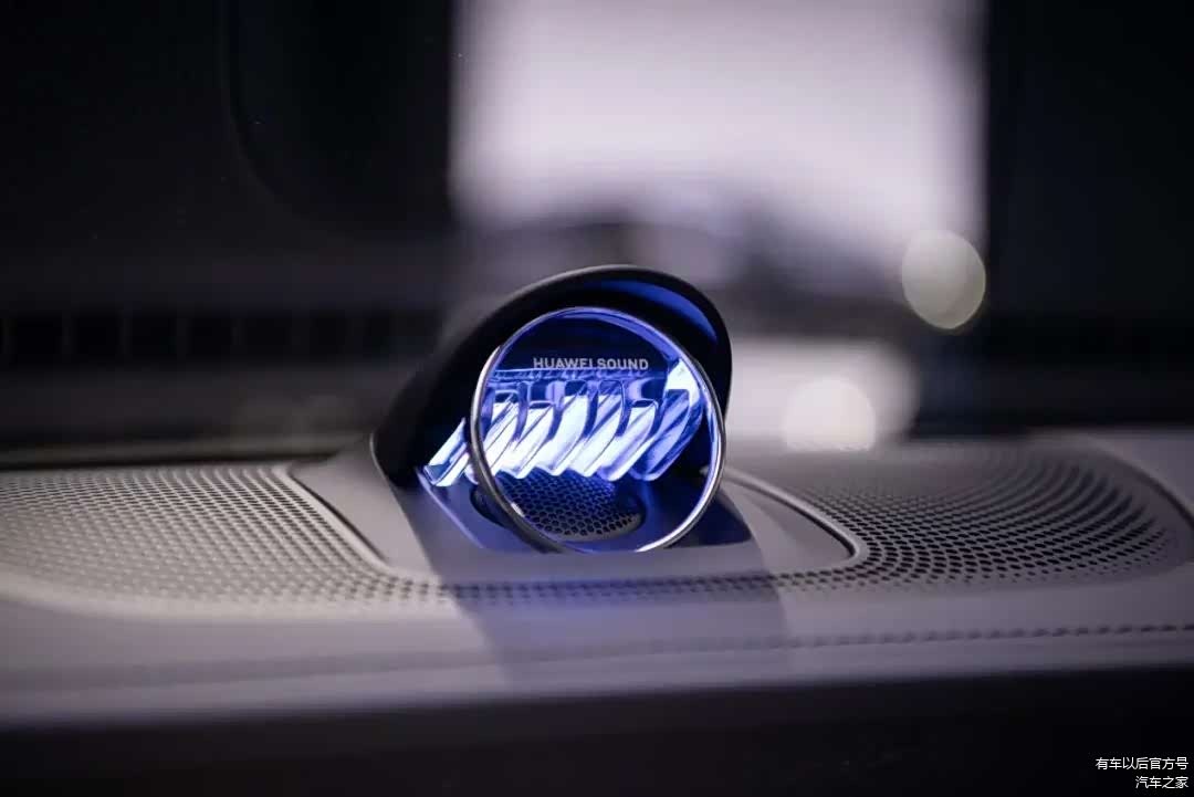 在仪表台的正中央,是HUAWEI SOUND标志性的声学器件——星环散射体,其声扩散角可达180°,能够让整车的声能量场更加均衡。此外,它的水晶材质和光影美学设计,更可以让声音律动变得有情感、看得见。
