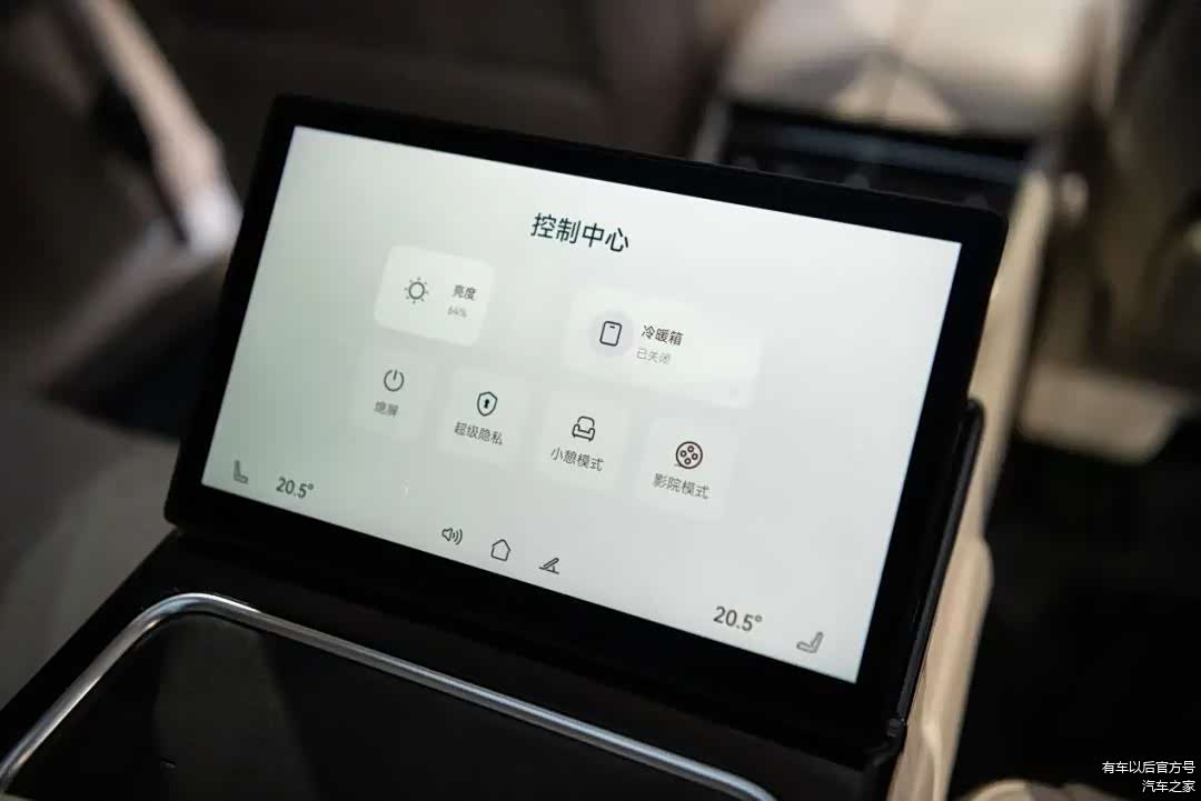 值得一提的是,享界S9还有着丰富的场景模式,例如前面提到的一键零重力,以及一键影院模式、一键遮阳、一键小憩模式等等,用户通过中控屏和后排总裁屏就可以操作实现。
