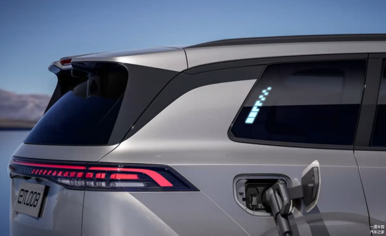 奕派008的车身尺寸达到了长5002mm、宽1972mm、高1732mm,轴距为3025mm。这样的尺寸保证了车内空间的宽敞和舒适。同时,D柱被还配备数字韵律充电指示灯,充电进度一目了然,体现了奕派008在细节上的用心。