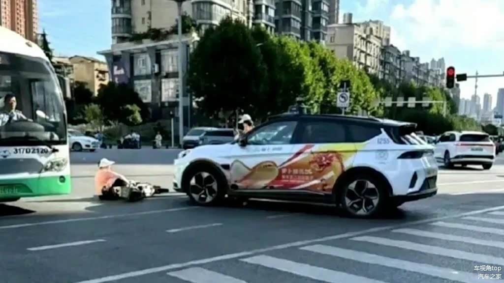 媒体报导,有武汉网友7日在网路上发布一段影片,显示有一名穿粉色上衣,骑电动脚踏车的大妈,被 萝卜快跑 撞倒,坐在「自驾计程车」前的街道上,交通警察已到场处理,造成现场交通一度堵塞。