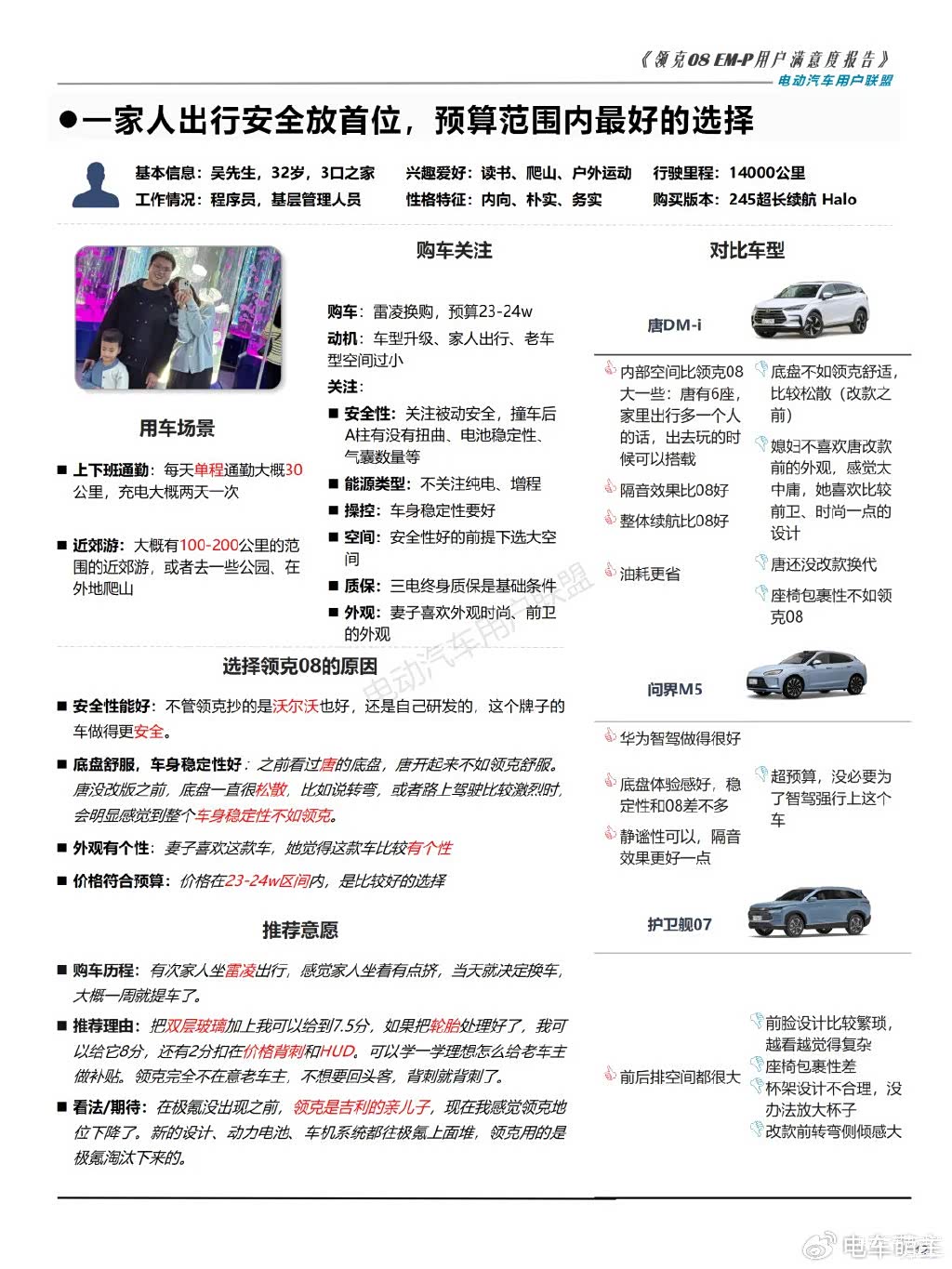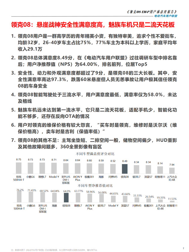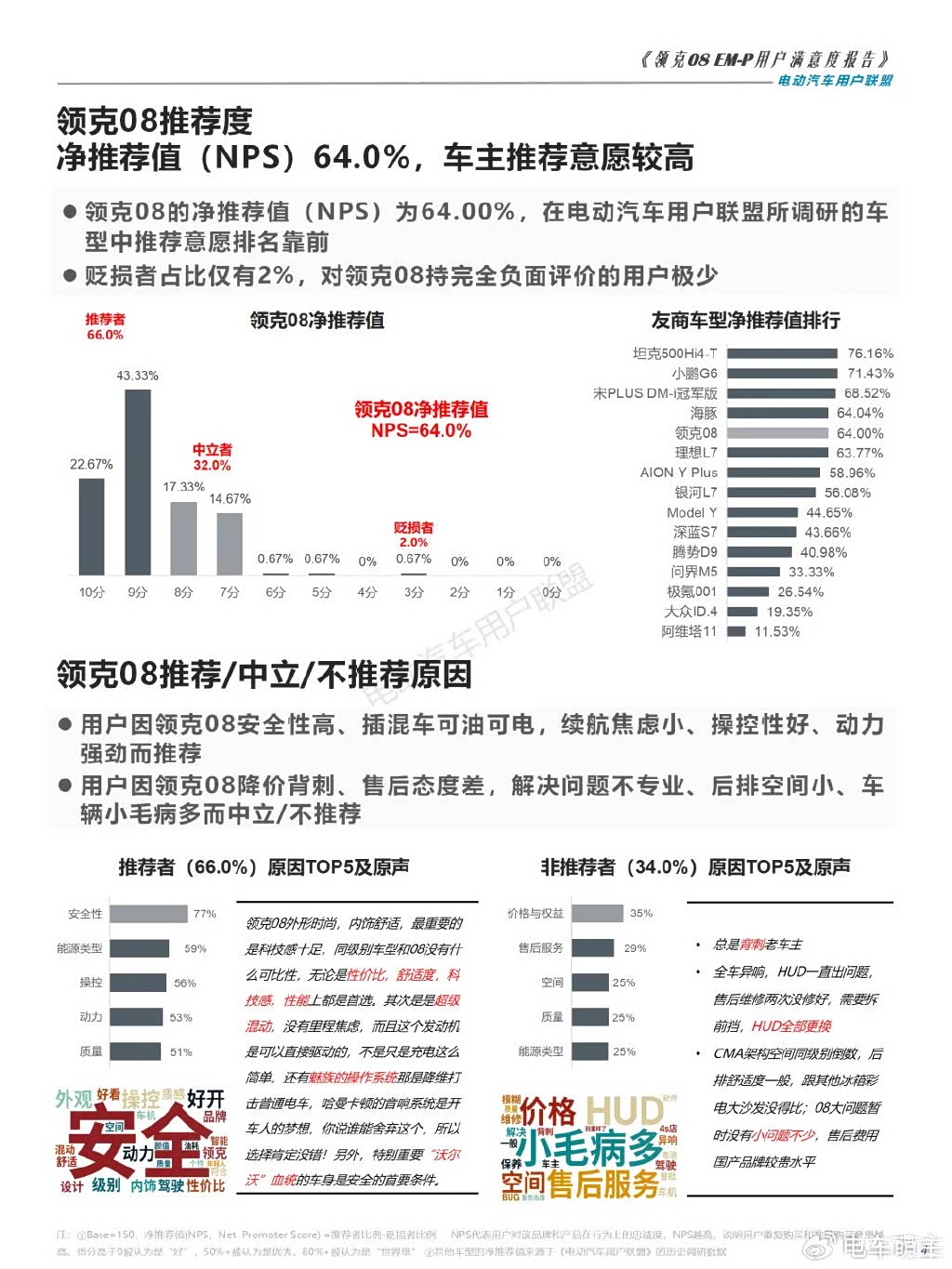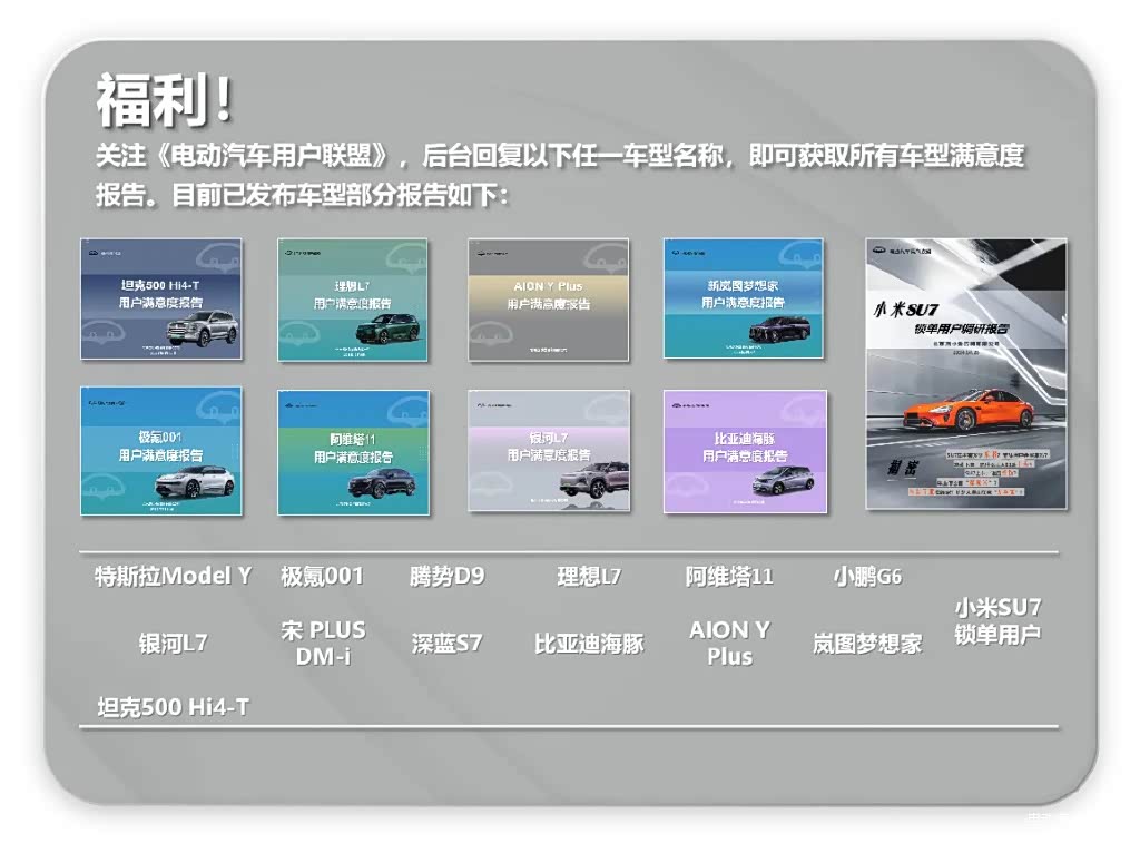 领克08EM-P的购车旅程与用户满意度部分到这就结束啦,如果您想获取完整版报告,请在《电动汽车用户联盟》公众号后台回复关键字“领克08”,即可获取完整版报告。