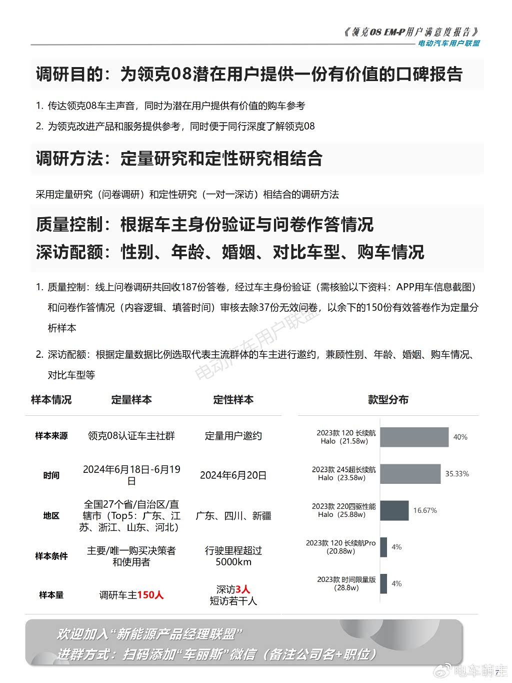 但是我们还是很好奇,稳居前三一定有它自身的“法宝”。于是,为了回答这个问题,我们于6月11日-6月20日展开了对领克08EM-P车主的调研,共获得150位车主的答卷、2位车主深度访谈以及若干短访的内容。