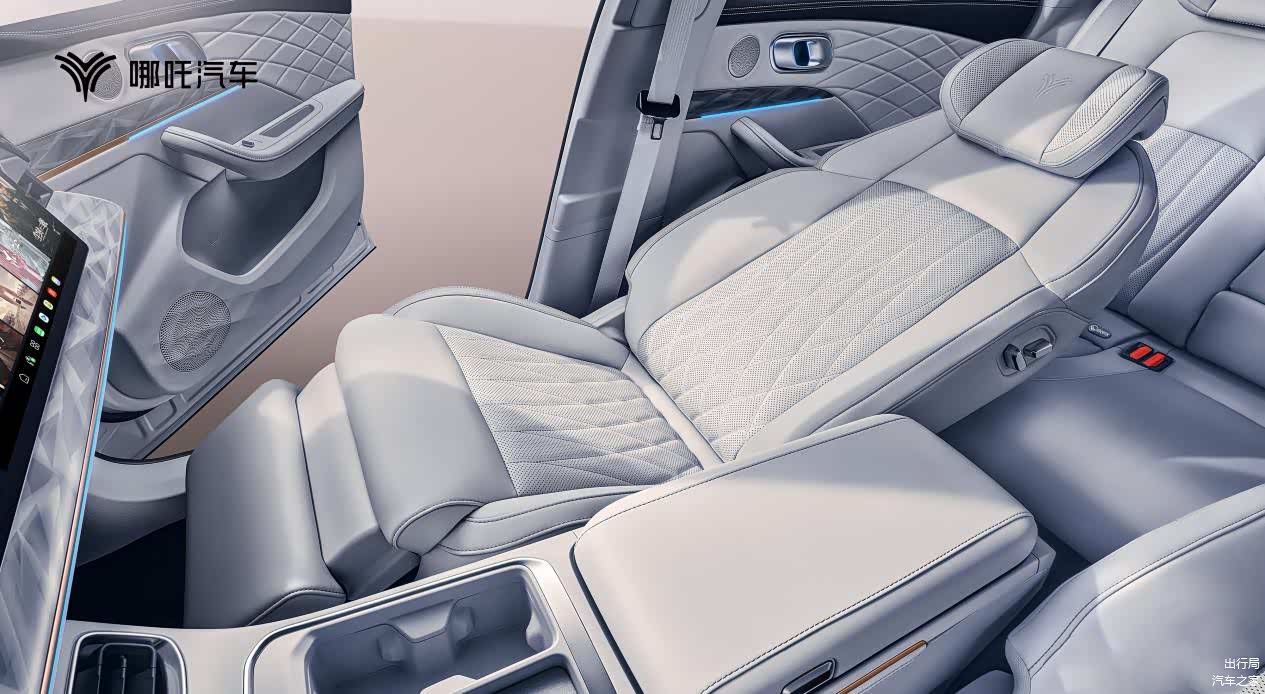 除了驾驶相关的智能配置外,哪吒L在座舱上也下了功夫,使用了行业顶尖的8295P车规级芯片,性能大幅领先8295芯片。并且,像前排座椅加热、通风、按摩、腿托,以及座椅记忆、后排加热、小桌板等功能/配置的使用,也让整车的舒适性得到了保证。