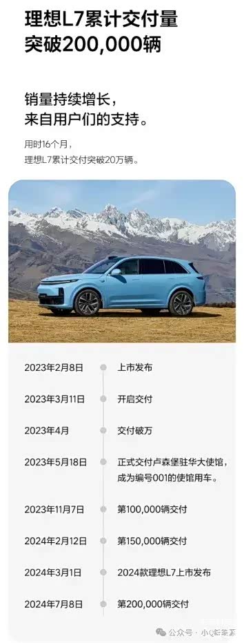 7月8日,理想汽车宣布了一个令人瞩目的消息:他们的首款中大型五座SUV——理想L7,在短短16个月内,累计交付量已经突破了20万辆大关。