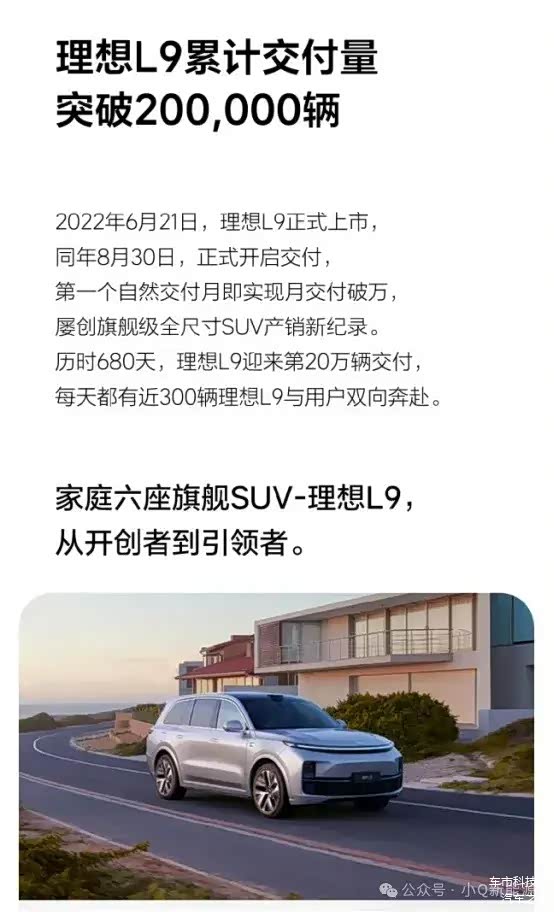 7月10日,理想汽车宣布完成第20万辆理想L9的用户交付。作为首个售价40万元以上单月交付破万的中国品牌车型,理想L9已连续19个月成为大型SUV销量冠军。历时680天。