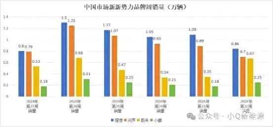 由于6月末冲量交付,7月第一周新势力品牌除了小米汽车以外,整体下滑。而问界和理想7月份第一周的差距的仅为100辆。中国市场新势力品牌中,理想周销第一,问界第二的局面已经持续两个月,理想、问界、蔚来已经连续三周排名前三。随着问界产能提升以及享界S9将于8月份发布。而理想下半年由于没有新的车型推出并且购车权益收缩,理想L6的爆发式增长可能也会下降,理想可能会出现增长乏力,问界和理想之间的销量差也可能会进一步缩小,甚至问界实现销量反超,实现“问理蔚”?