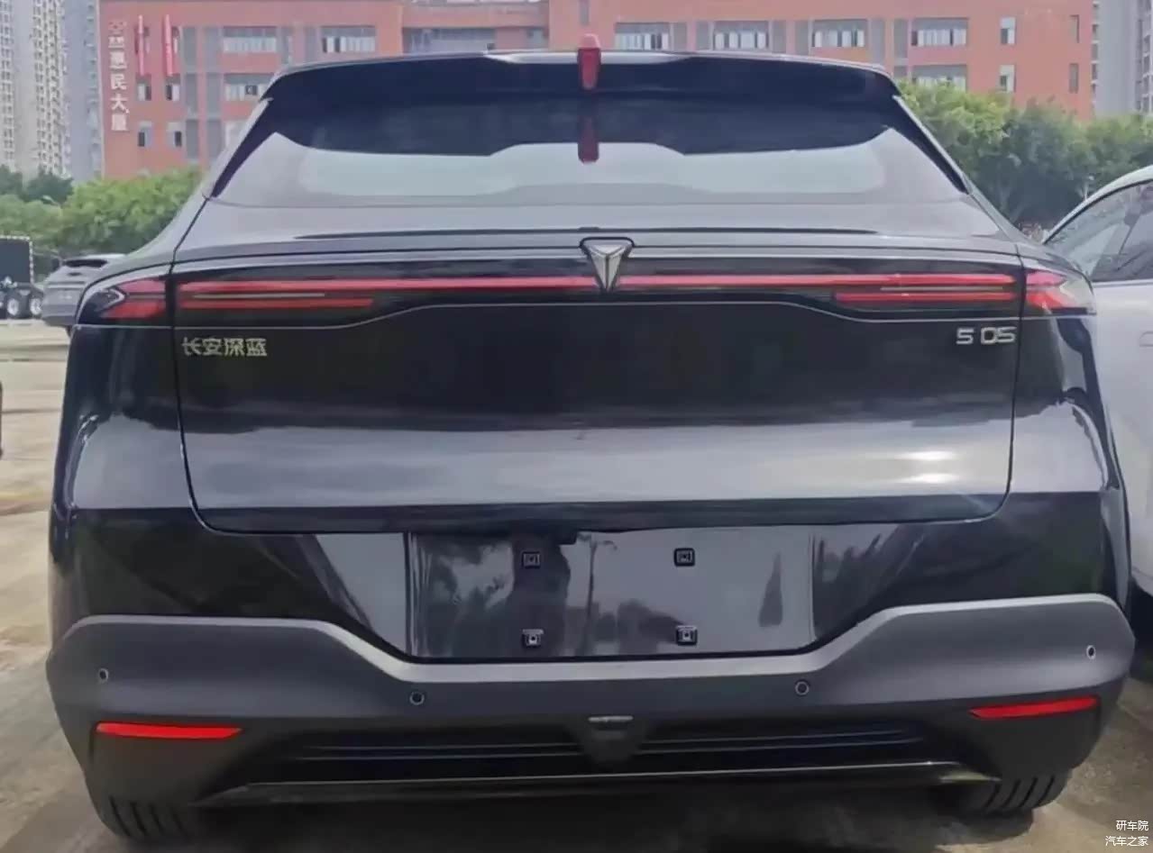 车身尺寸方面,深蓝S05的长宽高分别为4620/1900/1600mm,轴距为2880mm,相比深蓝S7略小一些。略显溜背的造型配合上扬的饱满腰线,营造出动感且优雅的车身姿态。此外,无框车门、隐藏式门把手以及“V”形半封闭式轮毂的设计,又为这款车增添了时尚、前卫的属性。尾部双层贯穿式尾灯配合发光logo,继续强调科技感,而不规则扰流板和底部熏黑后包围处的夸张扩散器造型,则让整车的战斗感呼之欲出。