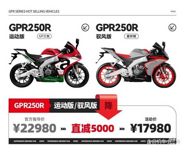 在进口摩托车市场的激烈竞争中,阿普利亚Aprilia凭借RS660的大幅降价掀起了轩然大波。合资板块的宗申阿普利亚也不甘落后,就在今日宗申阿普利亚宣布GPR系列车型进行大幅降价,最高降幅达5000元,为意向车友带来了巨大的惊喜。我们先说降价详情,之后再对GPR整车配置做介绍!