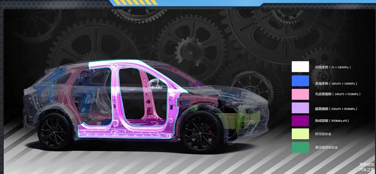 至于纵梁后部的抗变形区,使用的是就是钢材了,并且还做了加强片,因为真的撞到这里了,至少要减少用户乘坐空间的变形,变形越小,乘员的受伤几率越小,这种位置最能扛事的就是钢材了。