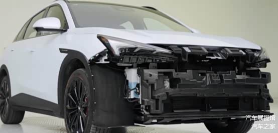 当极狐阿尔法T5拆车环节到保险杠位置的时候,我们可以看到它在保险杠前后两端的防撞梁体都使用了铝合金梁体和钢制材料。我们知道这部分主要负责的是吸能溃缩,铝合金这种轻量化材料就可以做到有效吸能溃缩,在减少车辆损失的同时,也能起到保护车内人员的效果。