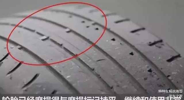 不管什么类型的轮胎,都会有专门的磨损标记,这是厂家在轮胎研制的过程中,检验总结出来的磨损极限值的标志。平时在轮胎的使用过程中,大部分车的前胎磨损会比后胎的厉害。当轮胎花纹磨损得快,接近此极限的标记时,就必须更换新轮胎了。如果轮胎花纹再往下面磨,排水槽就会被磨平,甚至变成光面的轮胎,光面轮胎的摩擦力和抓地力会大幅度下降,在遇到紧急情况时刹车很可能会因此失灵,所以危险程度非常高。因此,不管是小汽车还是大货车,轮胎在达到磨损寿命之前肯定要提前更换,切勿因小失大。