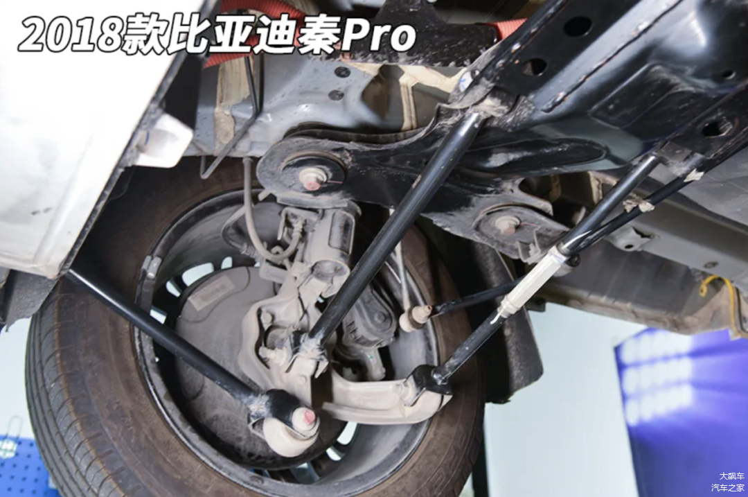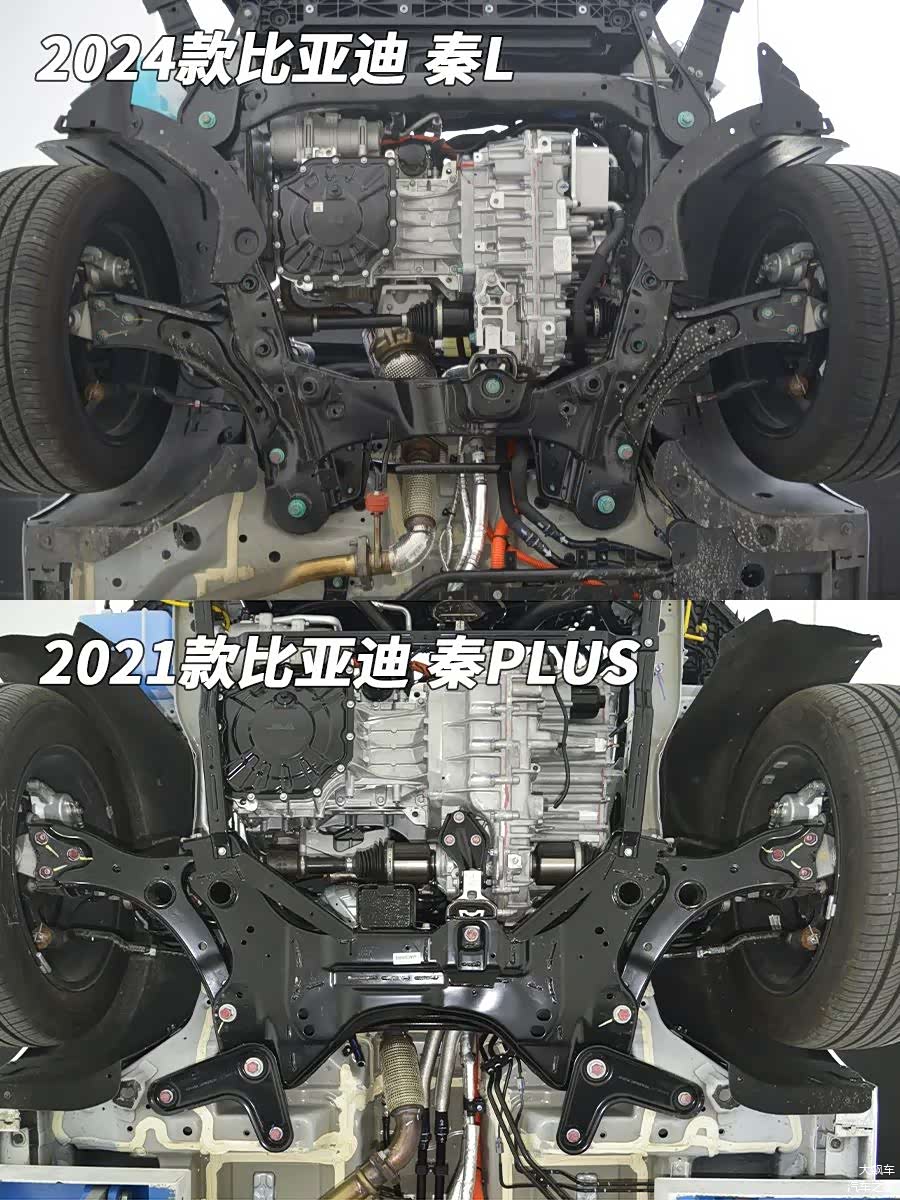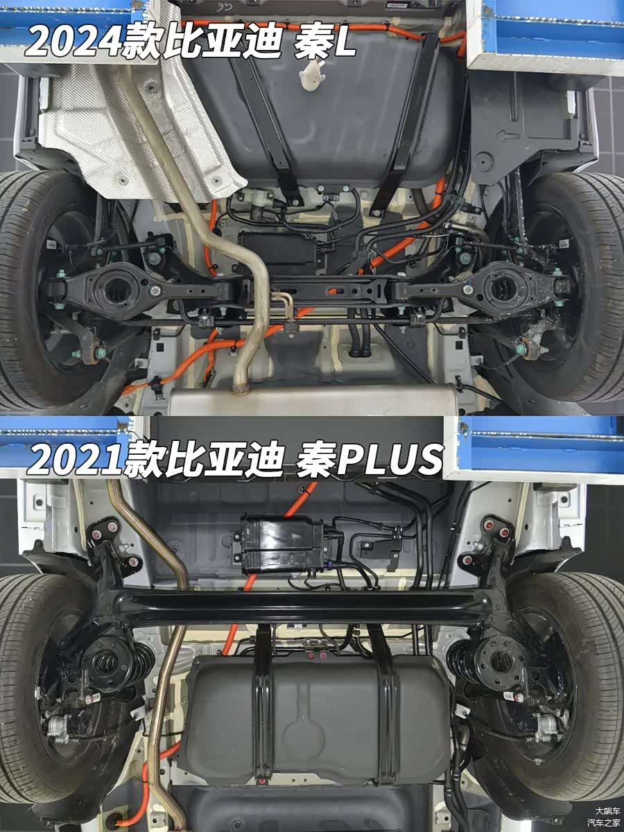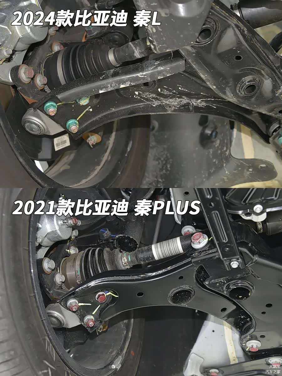 这辆秦L的后副车架是一体式结构,而秦PLUS是扭力梁。
