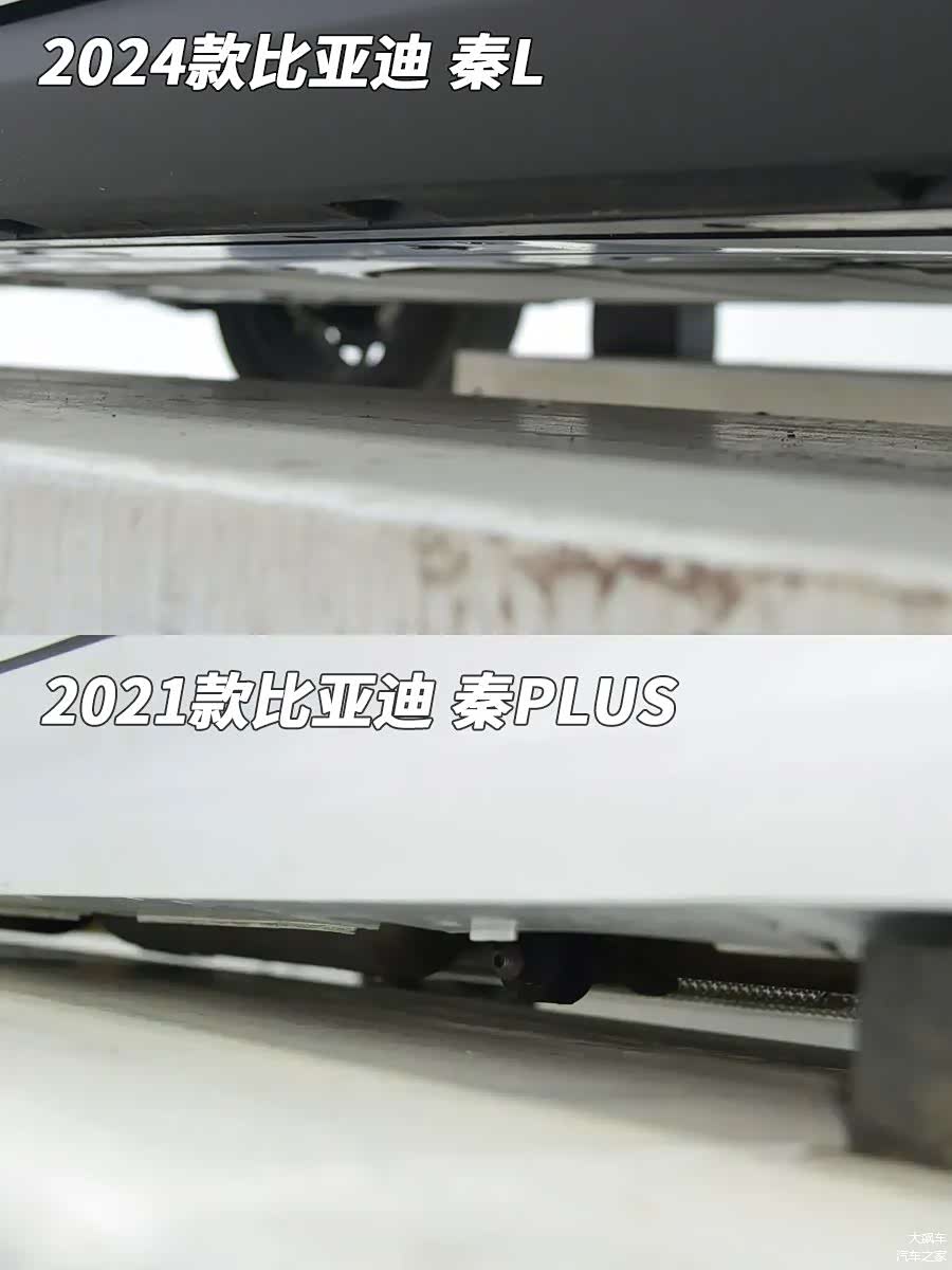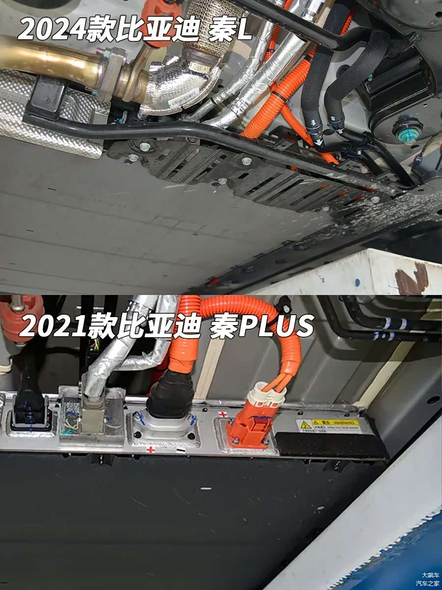 秦PLUS的电池部分凸出底盘,而秦L则非常平整。