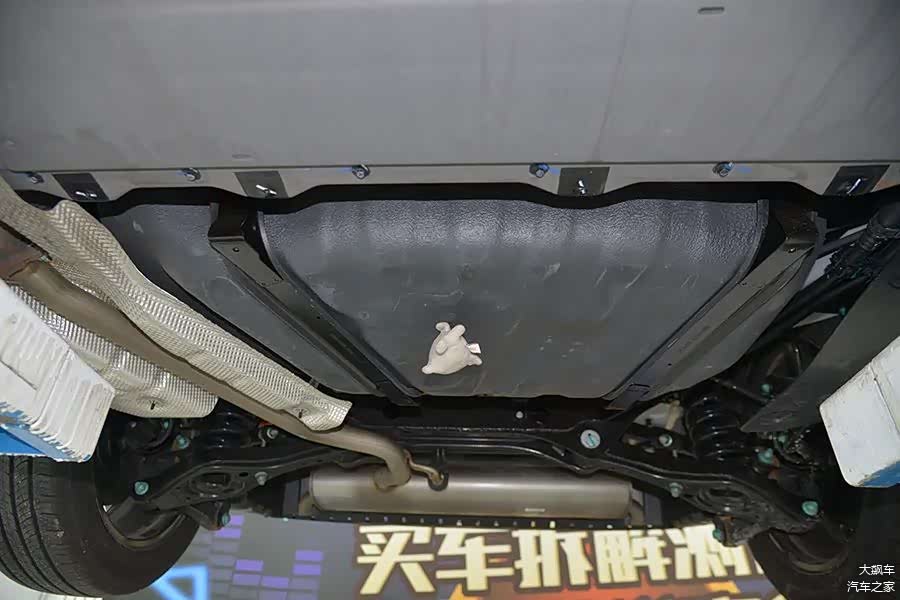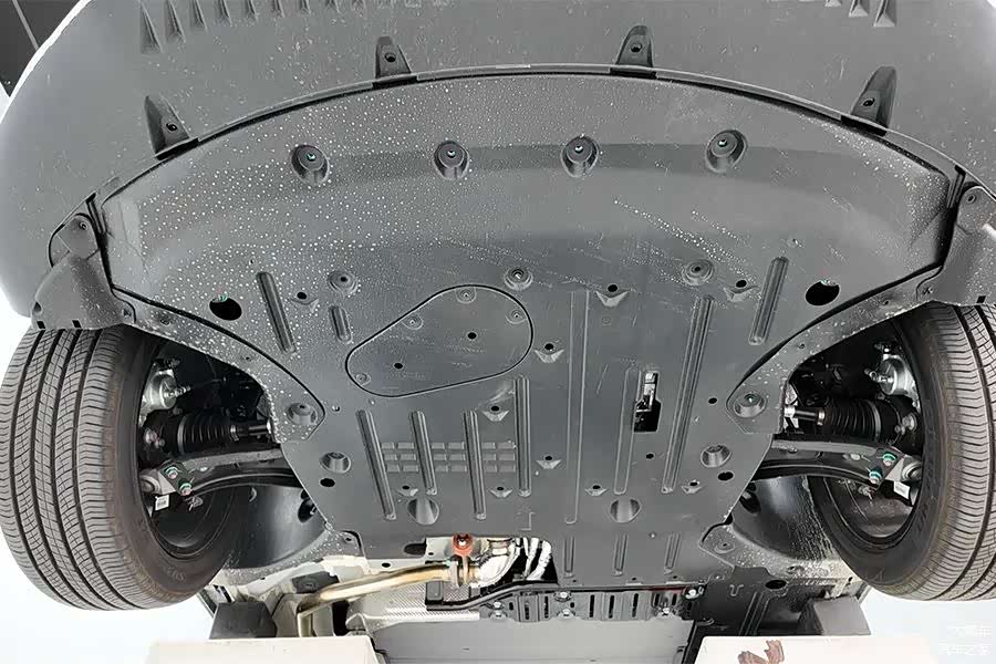 这辆车的底盘平整度不错,有塑料护板,起到防尘和扰流的作用。