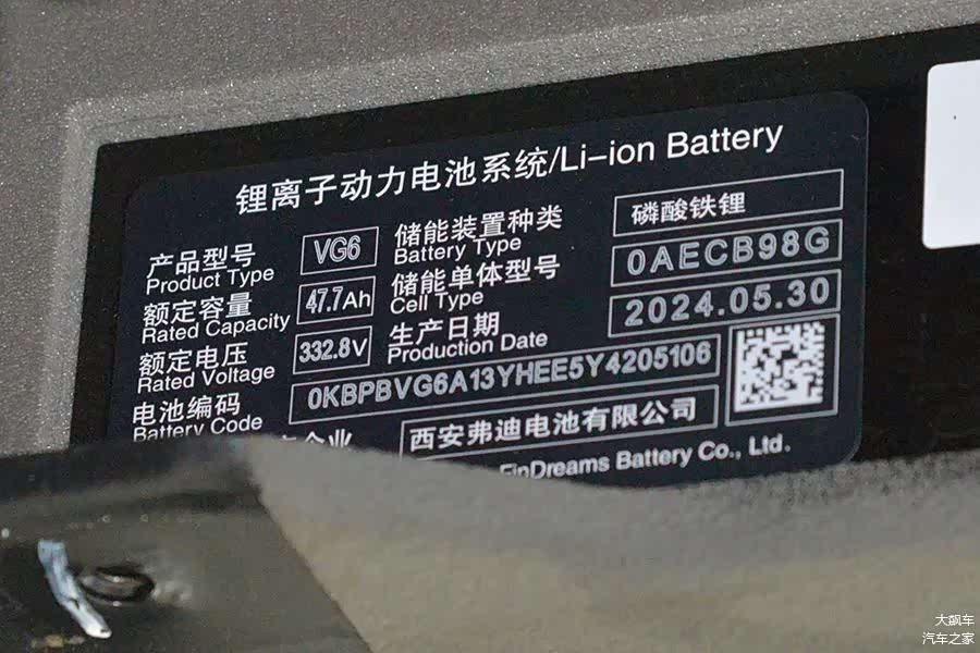这辆车的电池必然是比亚迪自己的磷酸铁锂刀片电池,依旧是直冷空调冷媒散热。额定容量为47.7安时,额定电压332.8V,所以需要升压之后再为电机提供电能。另外,比亚迪冷媒散热电池的冷媒板是粘在电芯上的,几乎没有办法维修,大概率是整块电池更换。