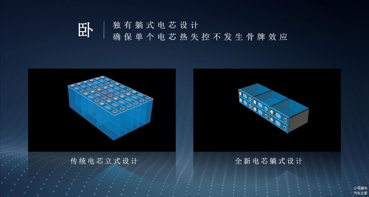 能够通过严苛的测试,和飞凡的技术实力显然是密不可分的。躺式电芯采用了多项自研核心科技,将原本立着的电芯放倒进行双层排列,这样就减少了电芯之间70%的接触面积,即使单个电芯出现热失控也不会波及到其他电芯产生多米诺骨牌效应。
