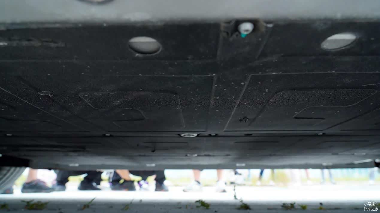 首先进行的是整车正向刮底测试,这个很好理解,就是我们日常用车中撞到像地锁这种路面障碍物的场景,对于电池放在车身底部的电车来说,这一测试很有必要,主要考验底盘和电池包的被动防护。测试中设置了三个直径35cm,间隔650cm的金属地锚,测试车辆飞凡F7以不低于60km/h的时速通过三个地锚,车辆经过撞击,底盘护板确实出现了剐蹭痕迹,但电池包安然无恙,未出现我们新闻中看到的自燃、冒烟的情况发生,车辆完全可以正常行驶。