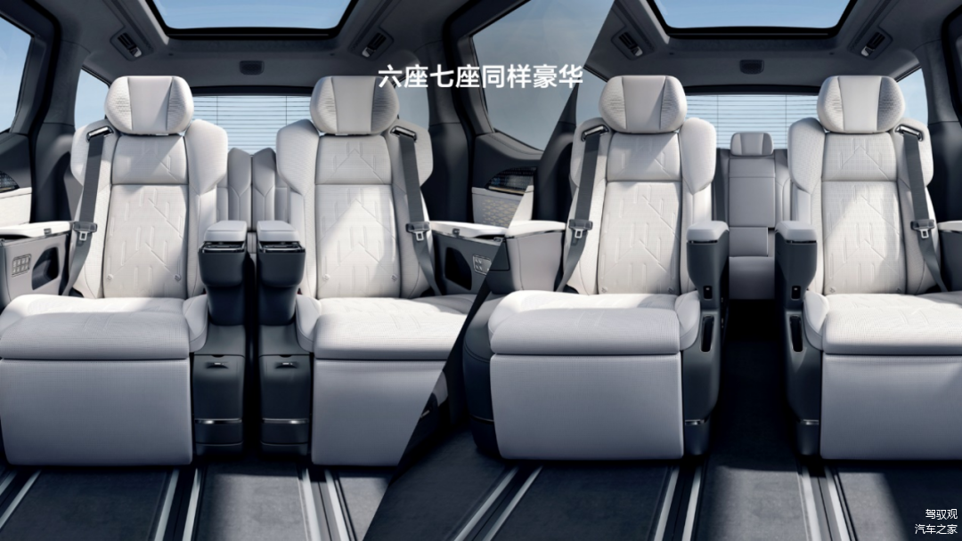 不止座椅豪华,彩电、音响和冰箱同样豪华。无论是前排的15英寸中控大屏,还是后排的17英寸娱乐大屏,都采用最新iPad Pro同款双层OLED。全系标配行业唯一的7.1.9声道座舱,支持杜比全景声,30个扬声器的雅马哈音响,峰值功率3000W,同级最大,9个天空声道让每一个座位都是全景声。全系标配行业唯一恒温冰箱,制冷最低零下6℃,制热最高50℃,支持24小时离车工作,并支持手机App控制,还带有紫外线杀菌功能,药品和婴儿食品皆可放心保存。