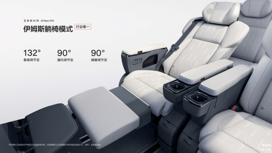 全新极氪009配备行业唯一“伊姆斯躺椅”模式