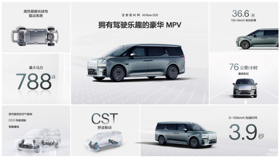 不造无聊的电动车 极氪式操控让MPV更有乐趣极氪从来不造无聊的电动汽车,即便是MPV,也要带给用户最好的性能和操控。全新极氪009全系升级搭载高性能碳化硅电驱系统,双电机四驱版本马力达到788匹,零百加速仅需3.9秒,比肩高性超跑,是全球加速最快的豪华MPV。