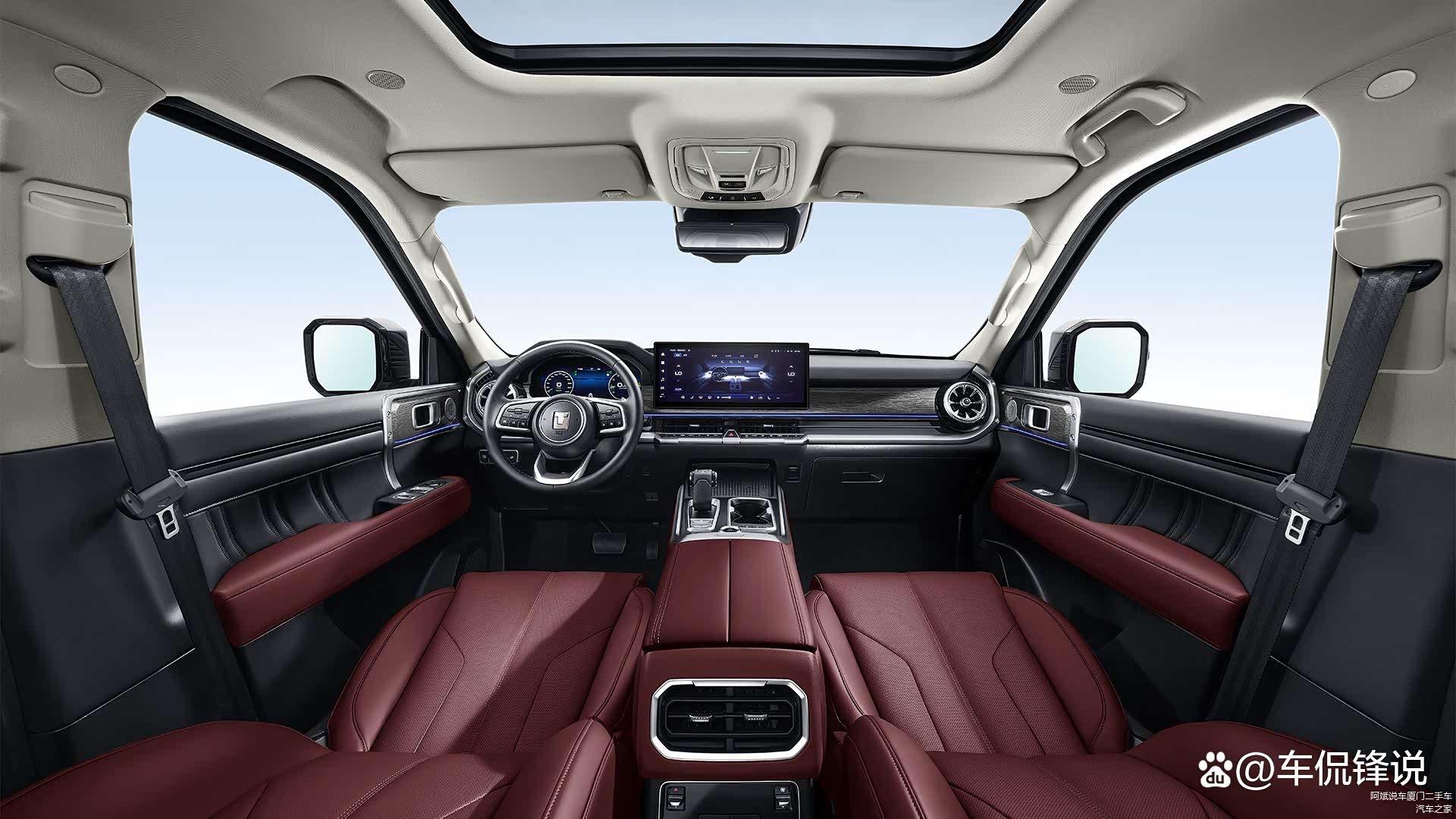 外在设计上,坦克400 Hi4-T走的是都市机甲路线,外在设计一样是粗旷的风格,本身采用了更多的线条来体现其力量感,外在一看就知道这是硬派SUV。整车尺寸上,其实坦克400 Hi4-T和坦克500 Hi4-T是差不多大小的,其长宽高是4985mm*1960mm*1900mm,轴距2850mm,这尺寸数据还是不小的,整个侧面上我们也可看到他的高大威猛。至于尾部设计上,一样是粗旷的风格,并且硬派SUV该拥有的“书包”是不会缺席的。整个外在设计就是传统的越野SUV风格,虽然这是插混车,但本身还是坦克自己的风格。
